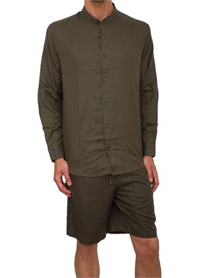 La camicia è realizzata in lino, cotone e lyocell, con logo ricamato sul petto.Presenta colletto coreano, chiusura sul davanti, maniche lunghe con polsini con bottoni.
