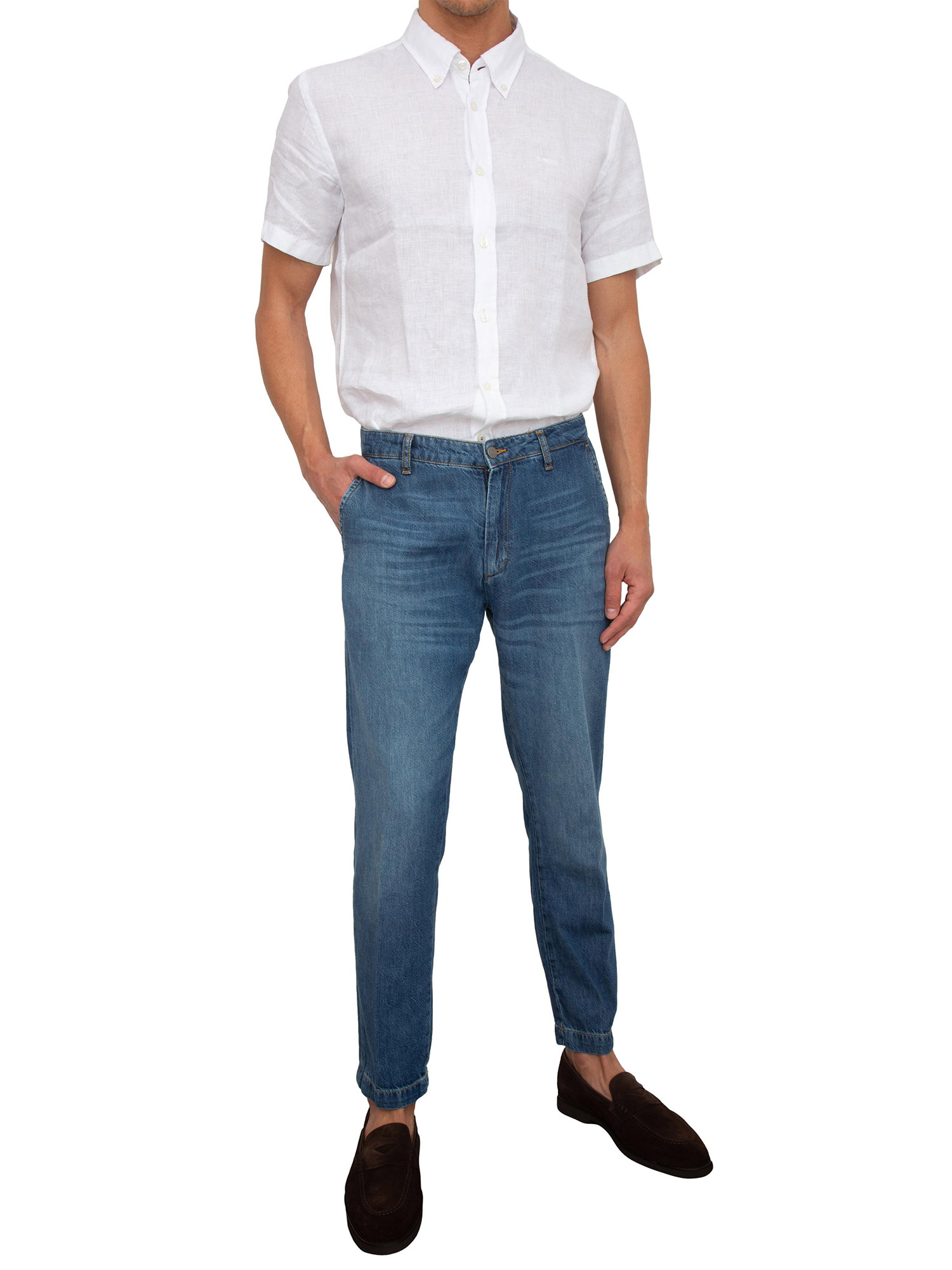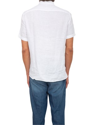 Camicia manica corta Boss uomo in lino bianco e collo botton down