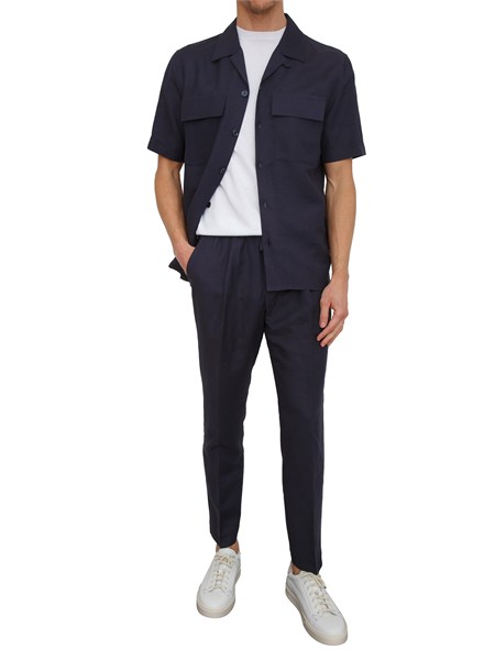 Camicia Boss P-Ray realizzata in misto cotone con maniche corte, colletto classico, chiusura frontale con abbottonatura e orlo curvo.
