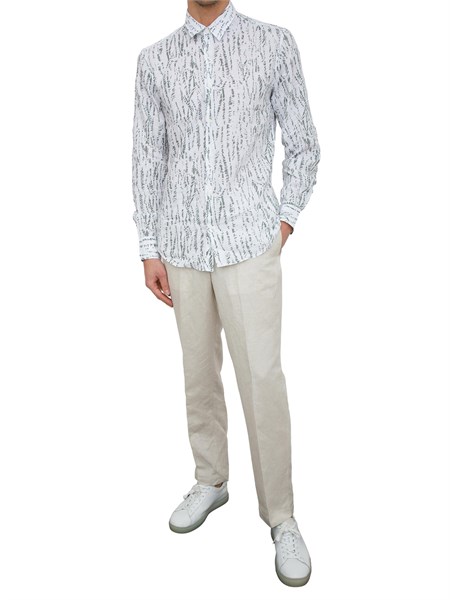 Camicia da uomo Emporio Armani in lino con collo alla coreana, maniche lunghe, vestibilità regular e chiusura con bottoni.