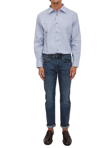 -      Camicia casual slim fit BOSS Uomo realizzata in cotone elasticizzato con stampa all-over. Il modello indossa la taglia M.