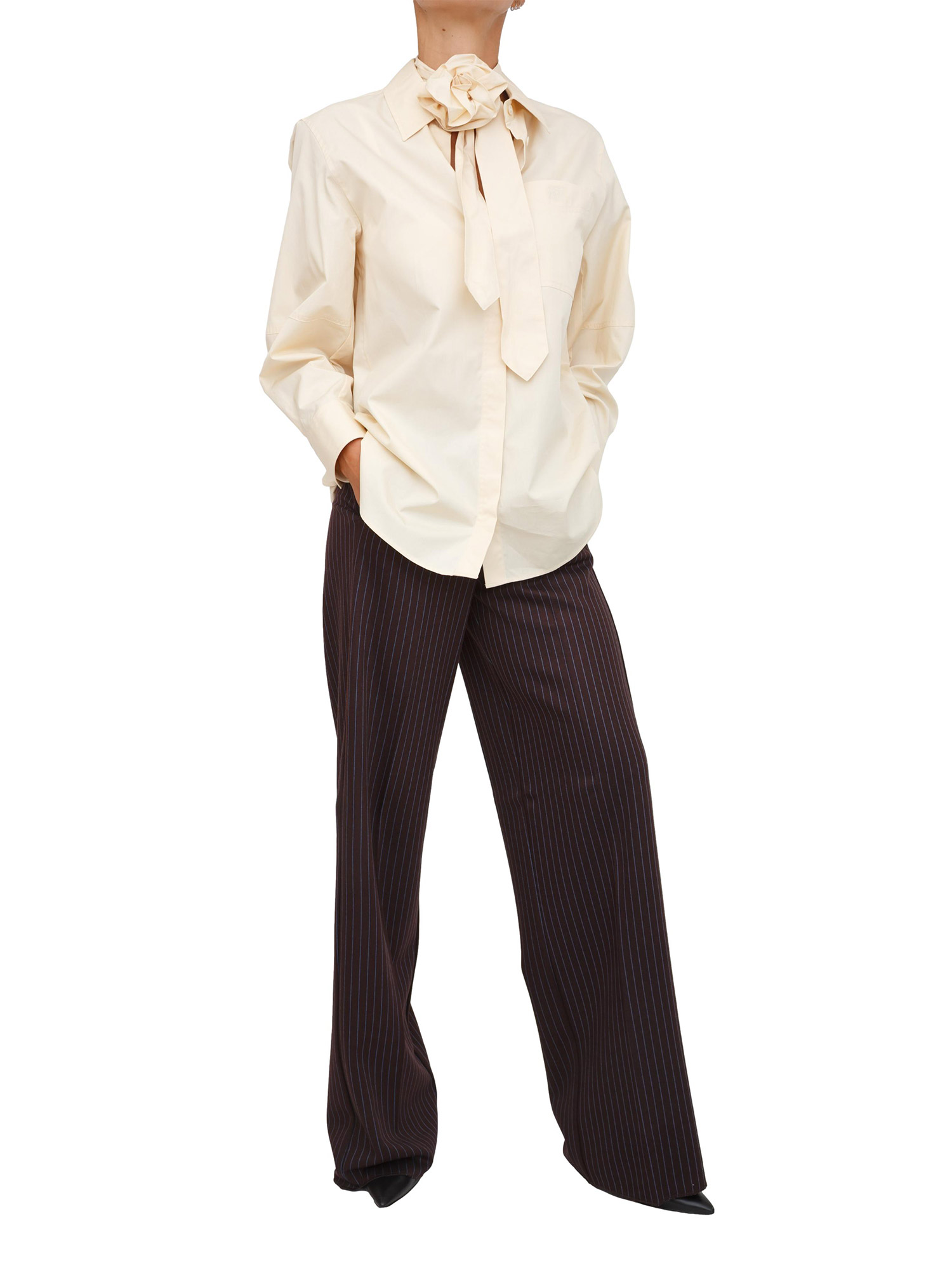 Camicia Marella con cravatta e fiore in popeline di cotone crema