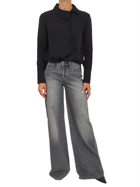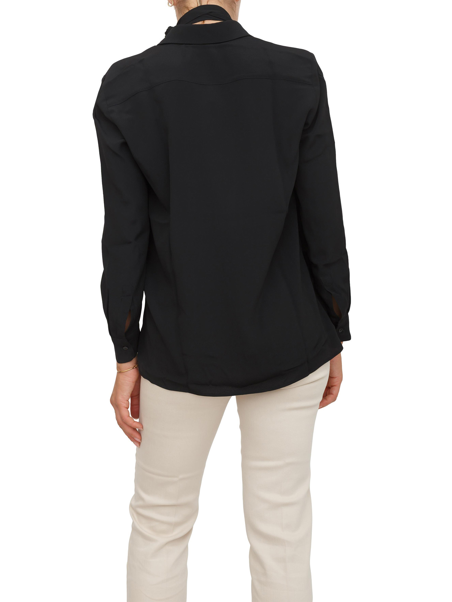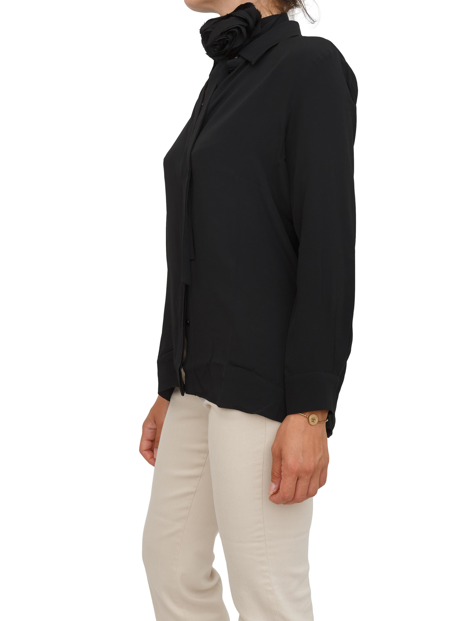 Camicia Marella in crepe de Chine di misto seta nera con cintura fiore