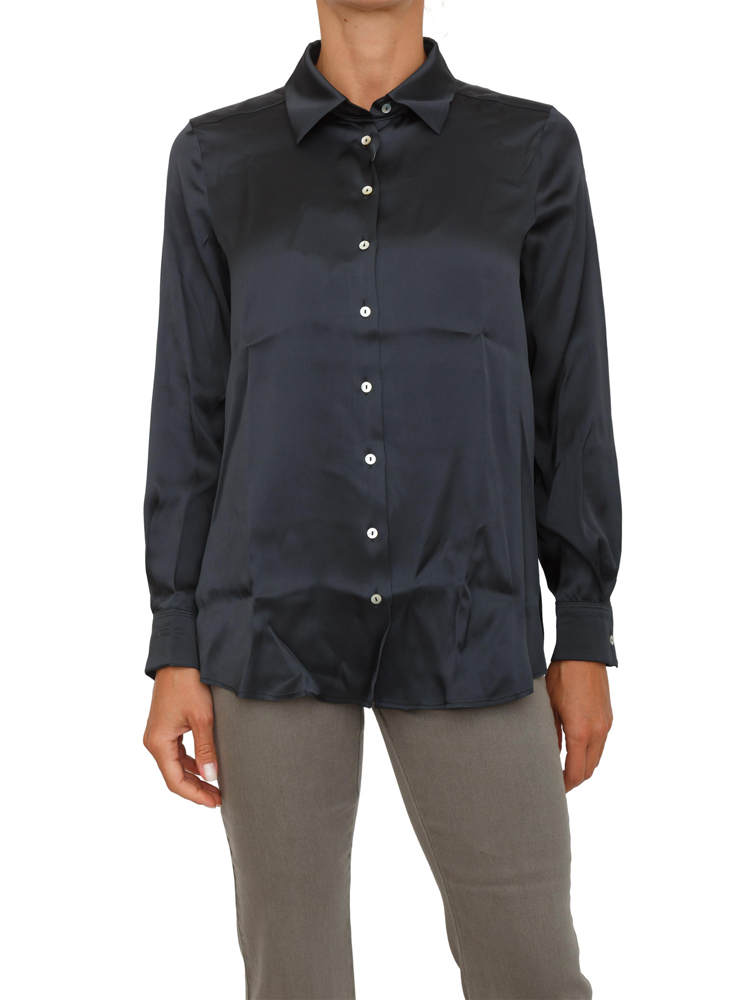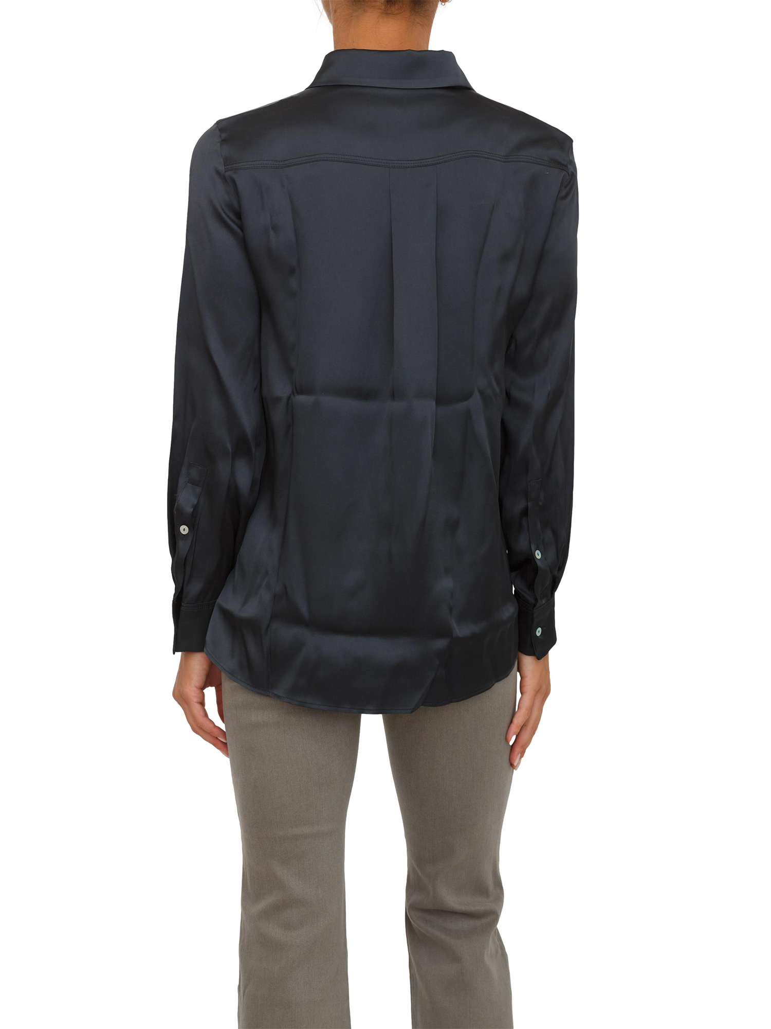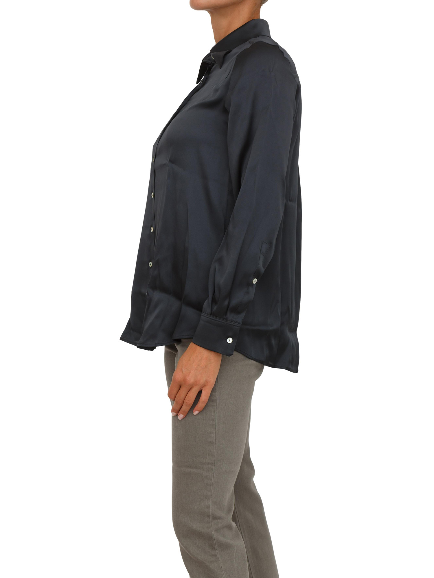 Come una carezza sulla pelle, la camicia Marella in raso di misto seta è il tocco sofisticato che eleva ogni look. Fit dritto, chiusura con bottoni e retro con carré e cannoncino. Da indossare con maglie soffici e pantaloni sartoriali, per un look urbano e chic. La modella è alta 1.72 e indossa la taglia 40.