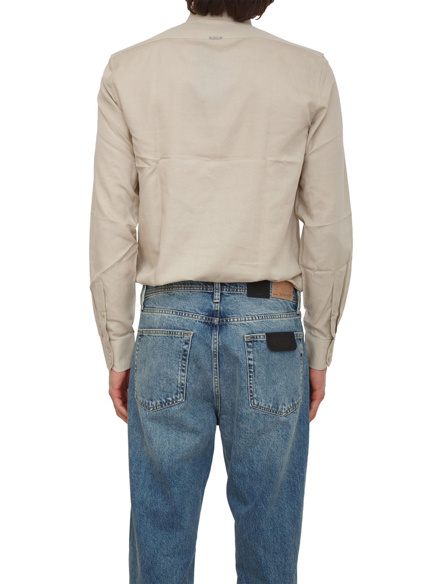 Camicia "Napoli" Antony Morato realizzata in misto lino e lyocell dal tocco morbido. Design regular fit ricercato con collo italiano, maniche lunghe e bottoni a vista ton sur ton. Il modello è alto 1.90m e indossa la taglia 48.
