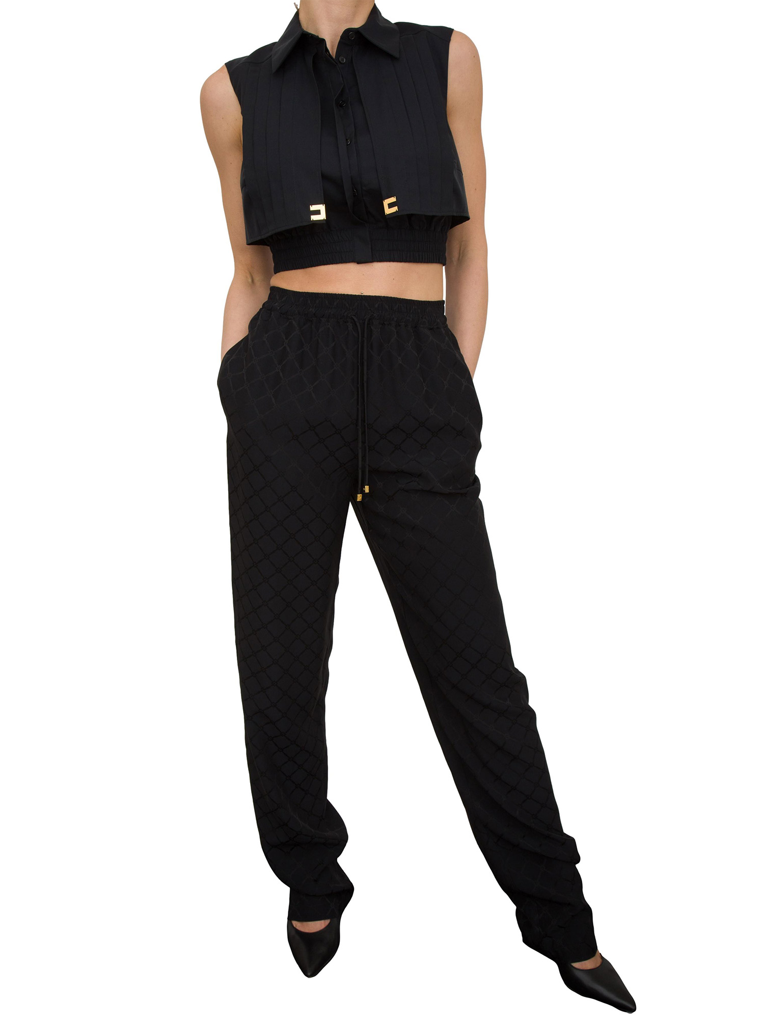 Camicia nera cropped in popeline con mantellina Elisabetta Franchi