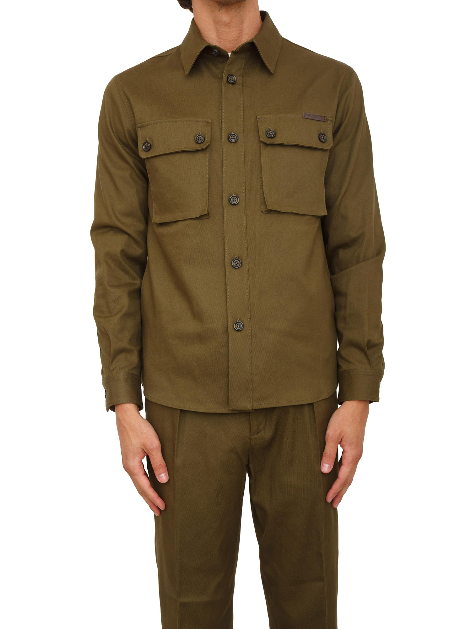 Camicia overshirt Paolo Pecora in gabardina verde