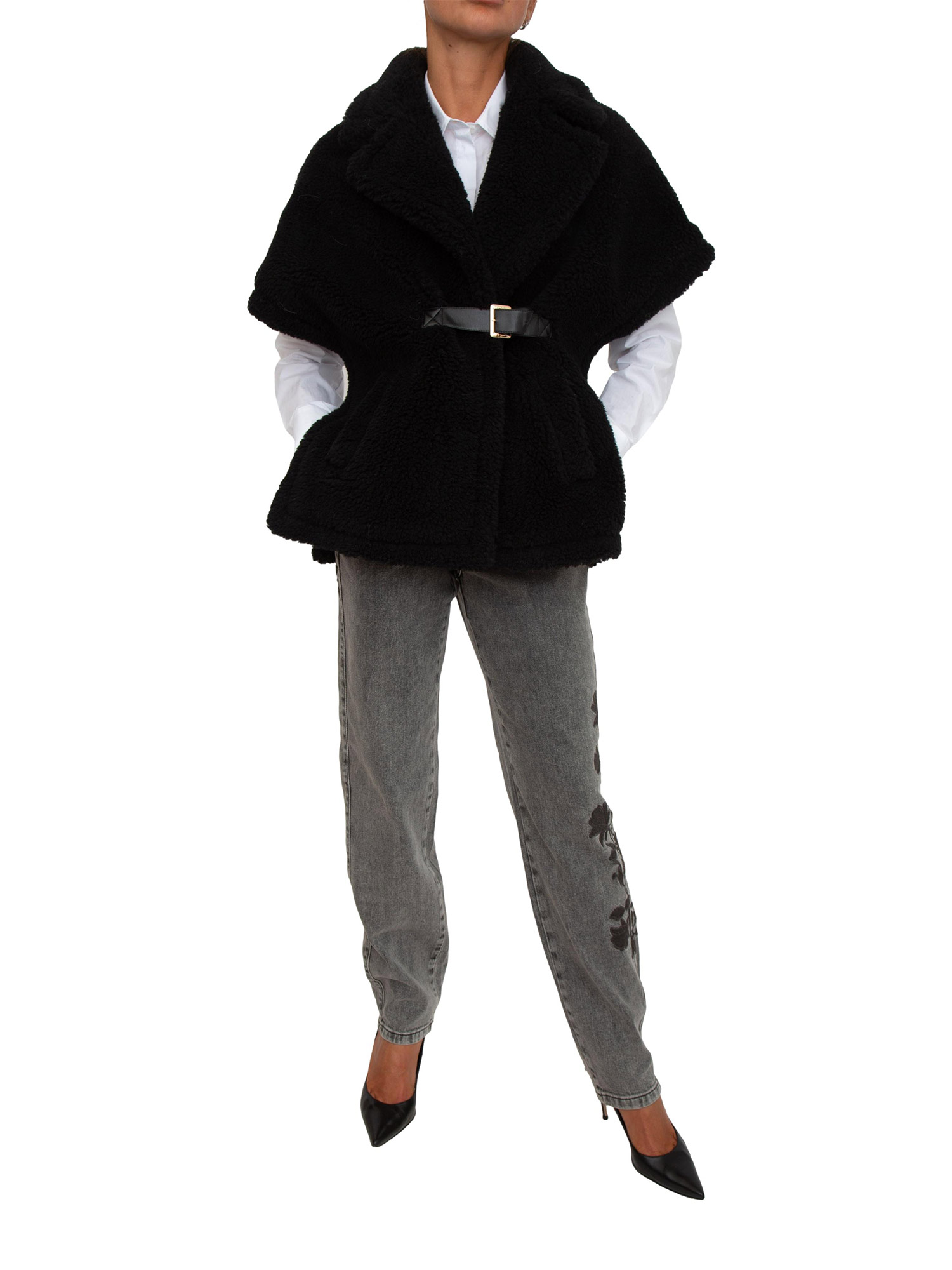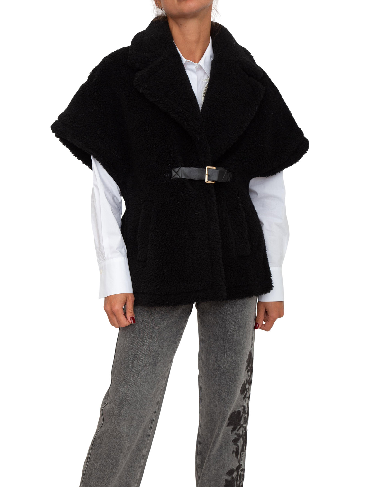 Cappa gilet Blugirl in faux fur nero con cinturino