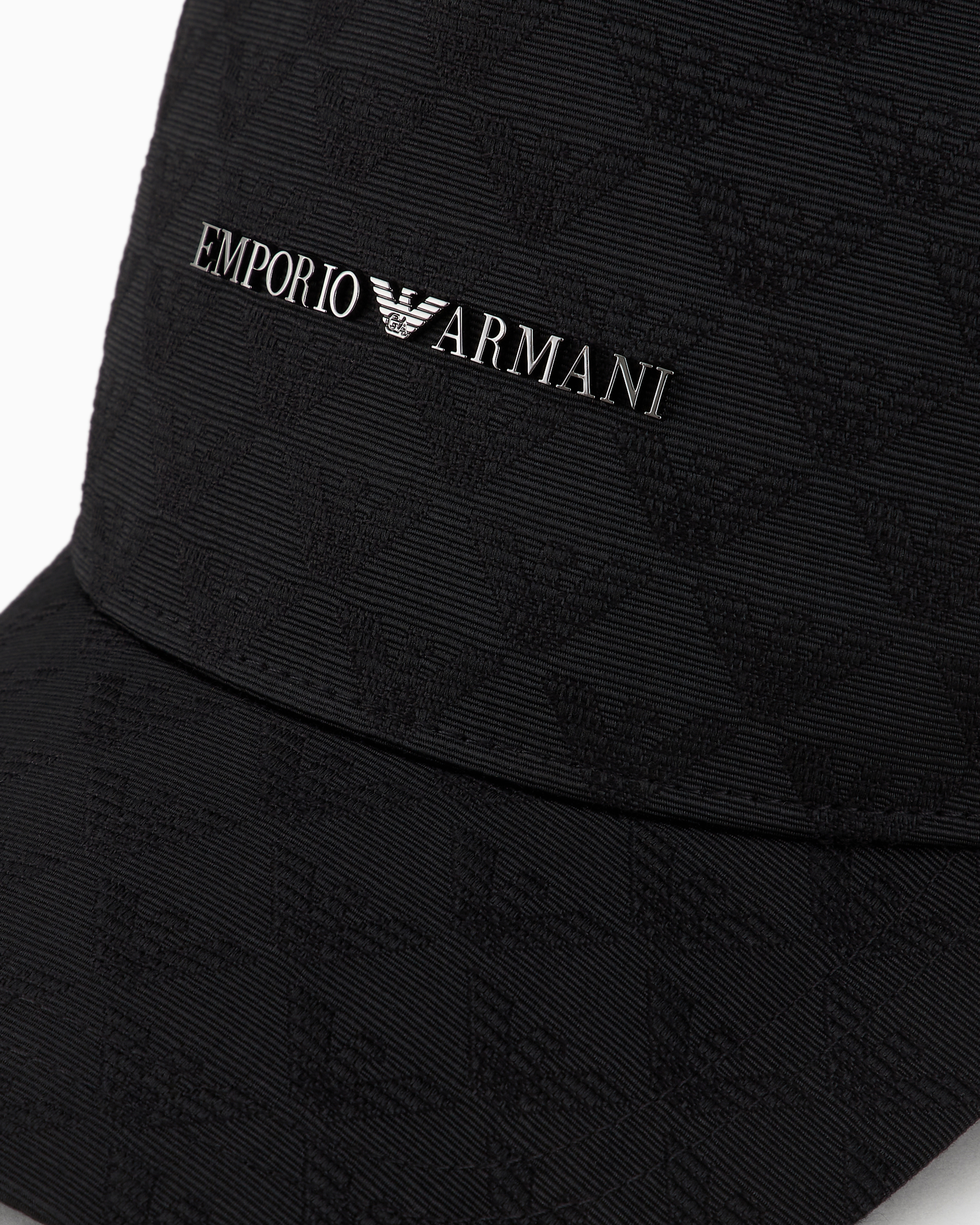 Cappello da baseball Emporio Armani in tessuto nero jacquard logo