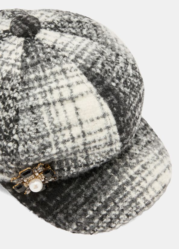 Cappello Liu Jo in tessuto check con spilla strass e perla