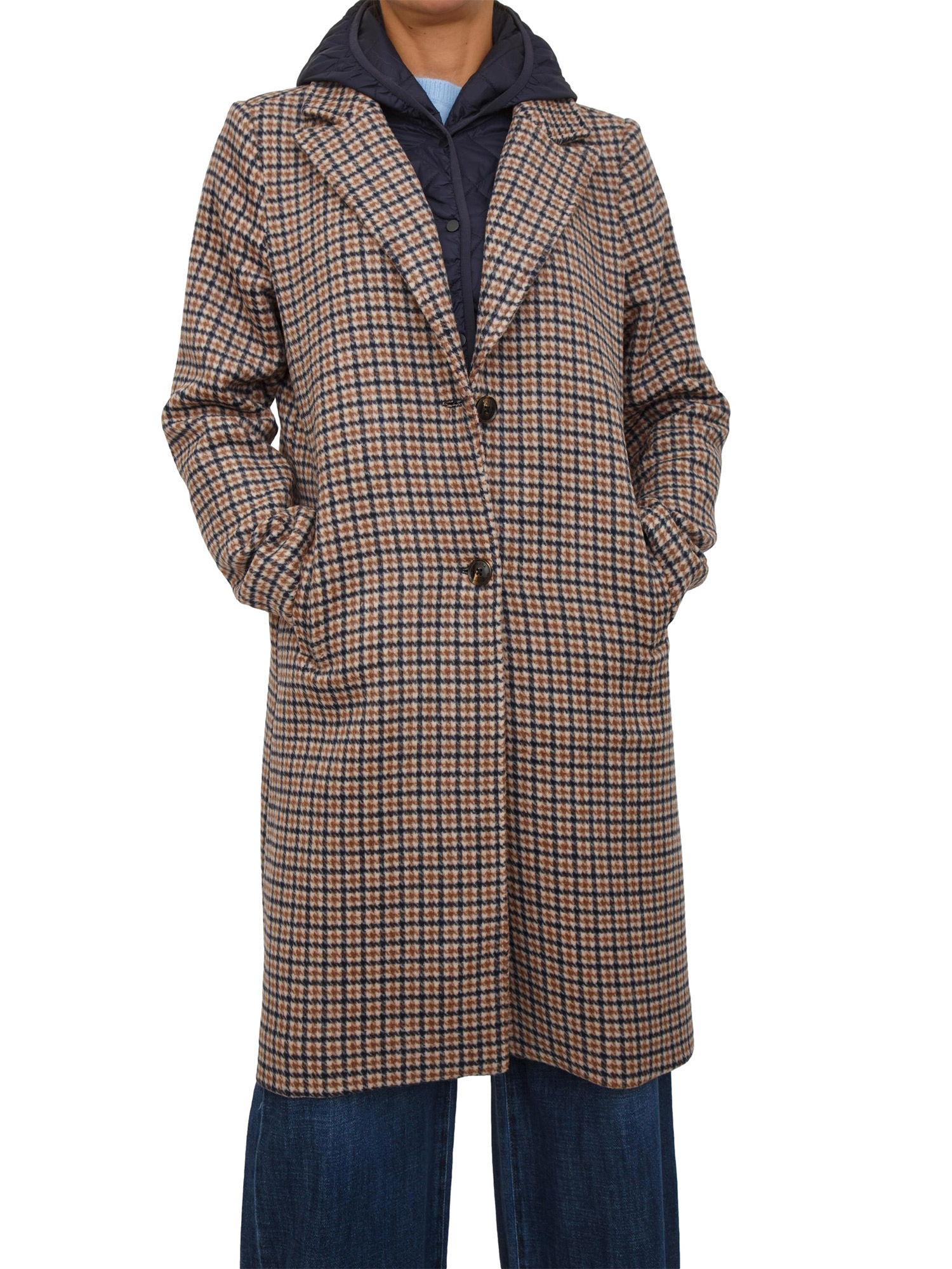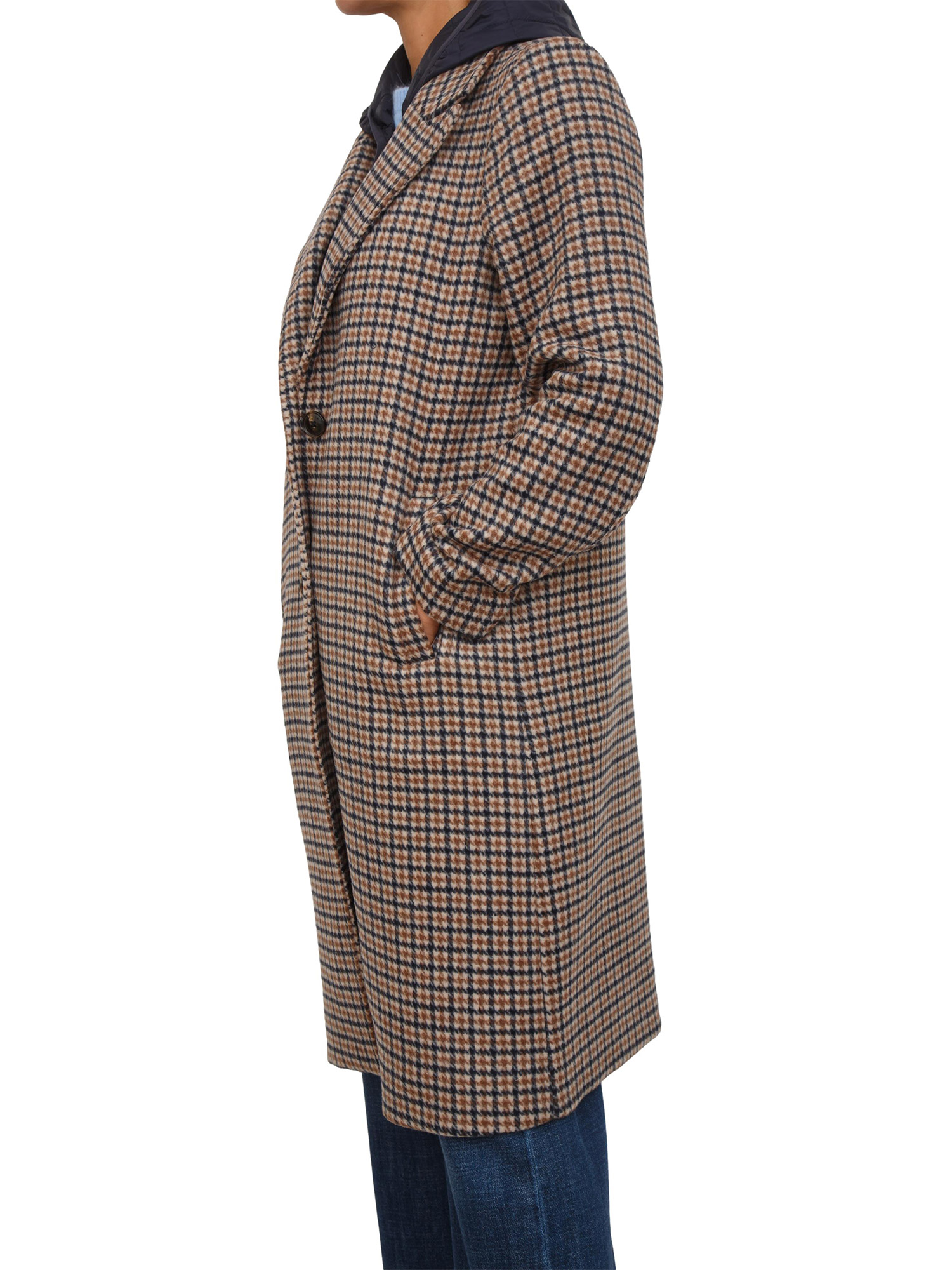 Un elegante tessuto pied de poule impreziosisce questo cappotto Didier di Kocca caratterizzato dalla chiusura a due bottoni, ampi revers, tasche a filetto e vestibilità standard. Arricchito anche da cappuccio e pettorina staccabile imbottita. La modella è alta 1.72 e indossa la taglia S.