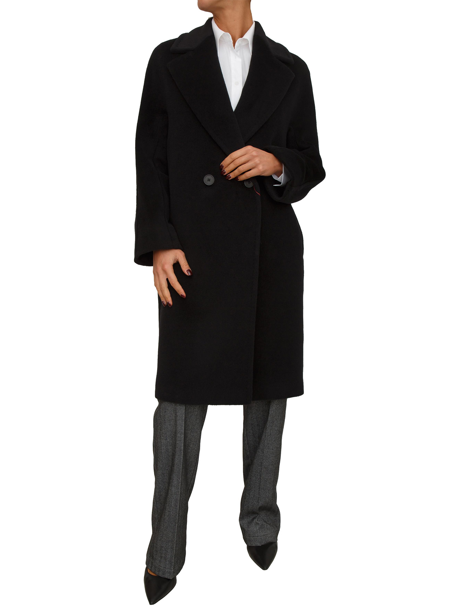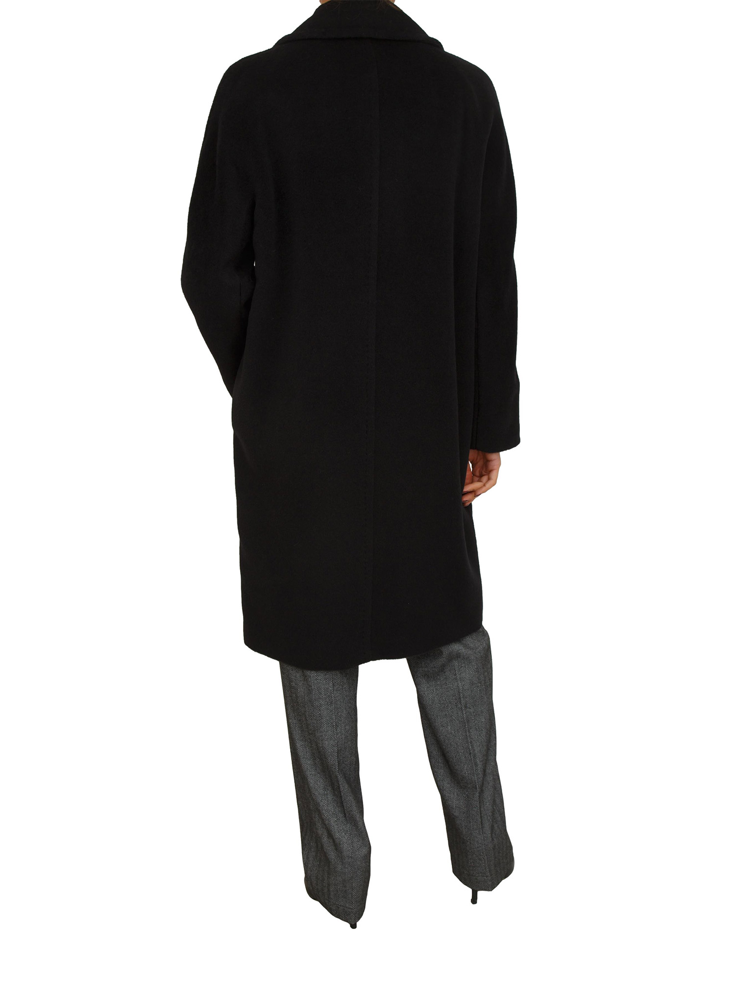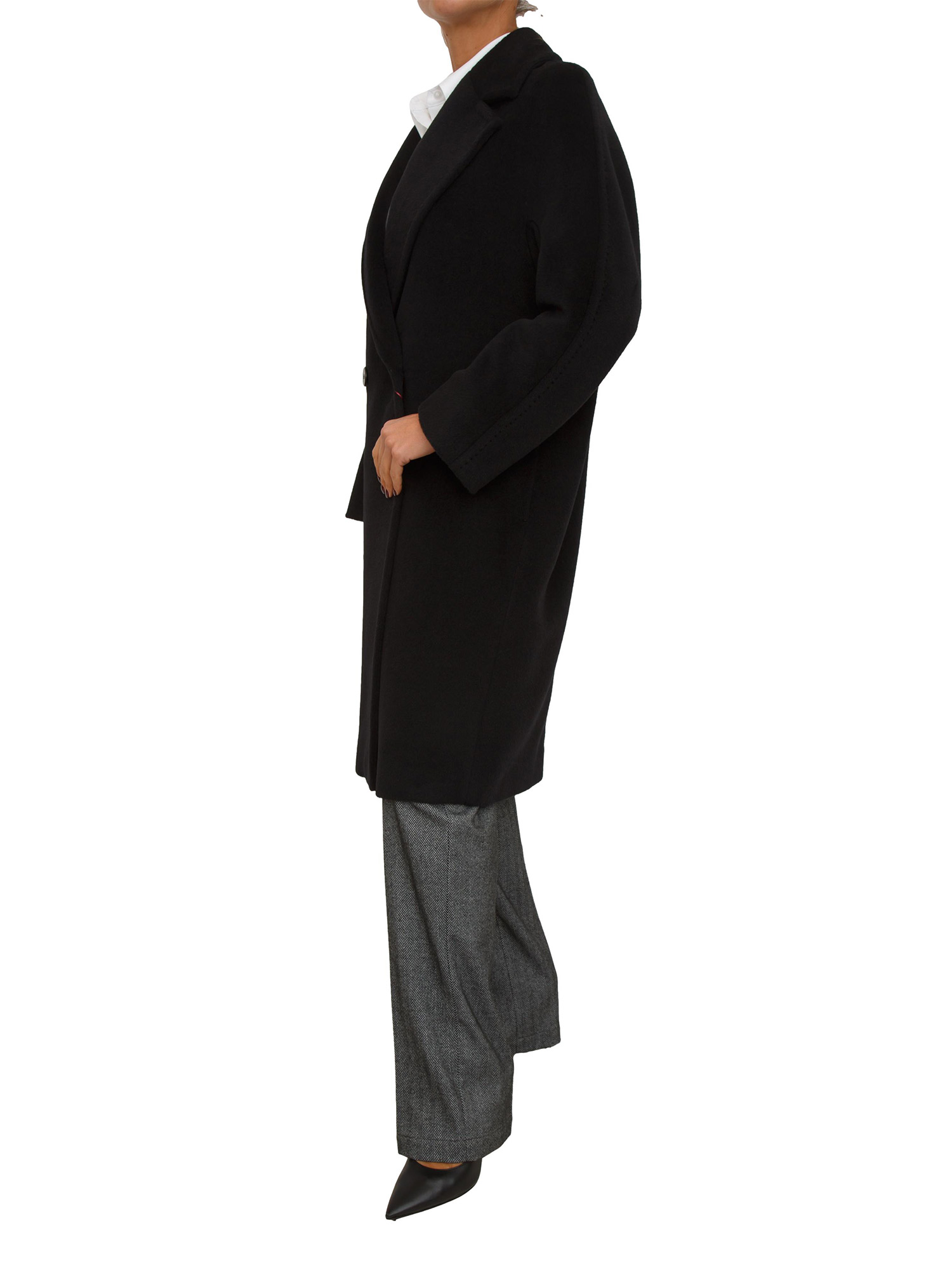 Cappotto donna Tokio Max Mara realizzato in calda lana con taglio sartoriale dalla linea dritta e fodera interna. Design caratterizzato da chiusura doppiopetto, collo a rever ampio, maniche lunghe a kimono e tasche sui fianchi. La modella è alta 1.72 e indossa la taglia 42.