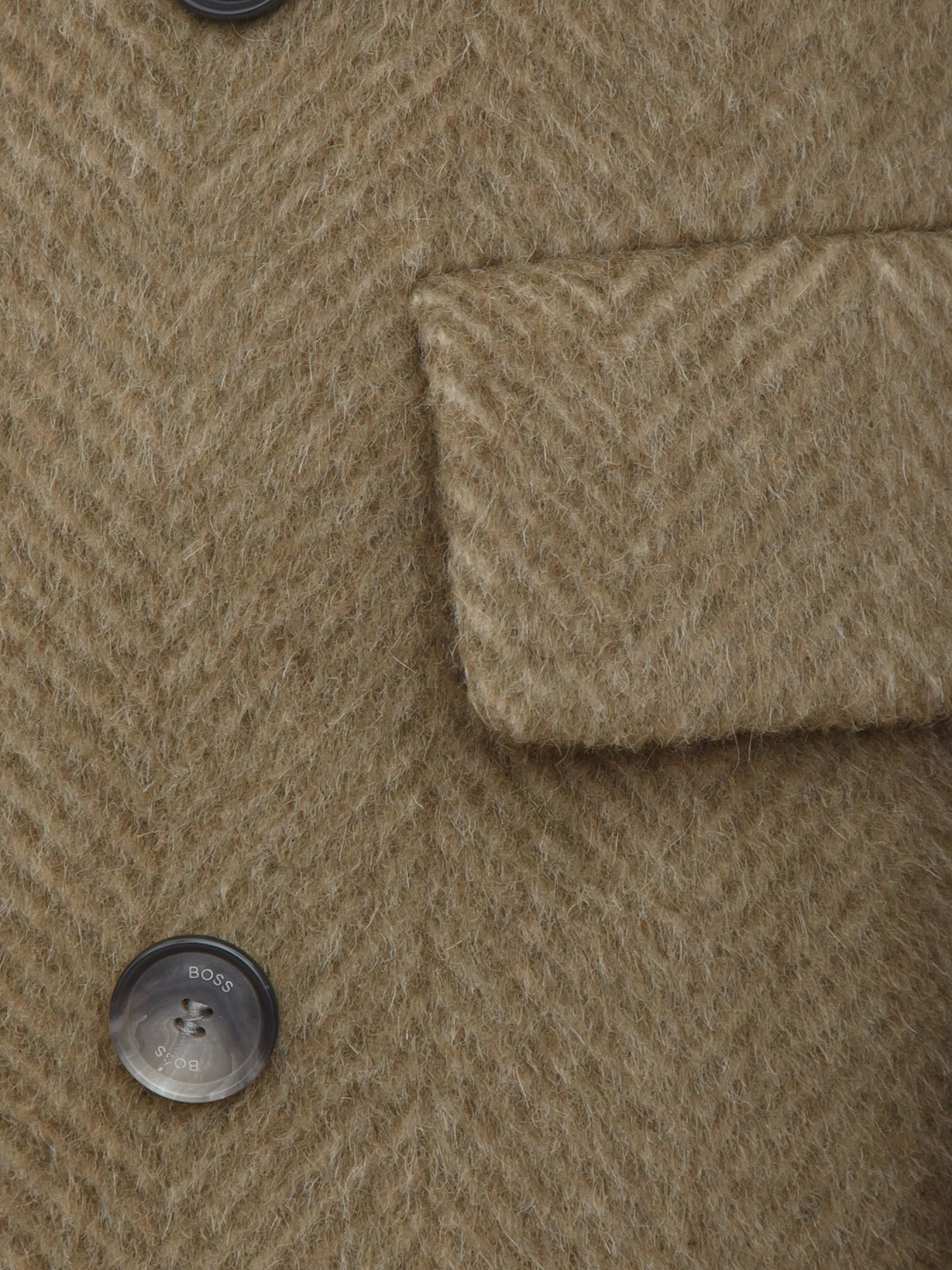 Cappotto doppiopetto Boss uomo in alpaca e lana verde spigato