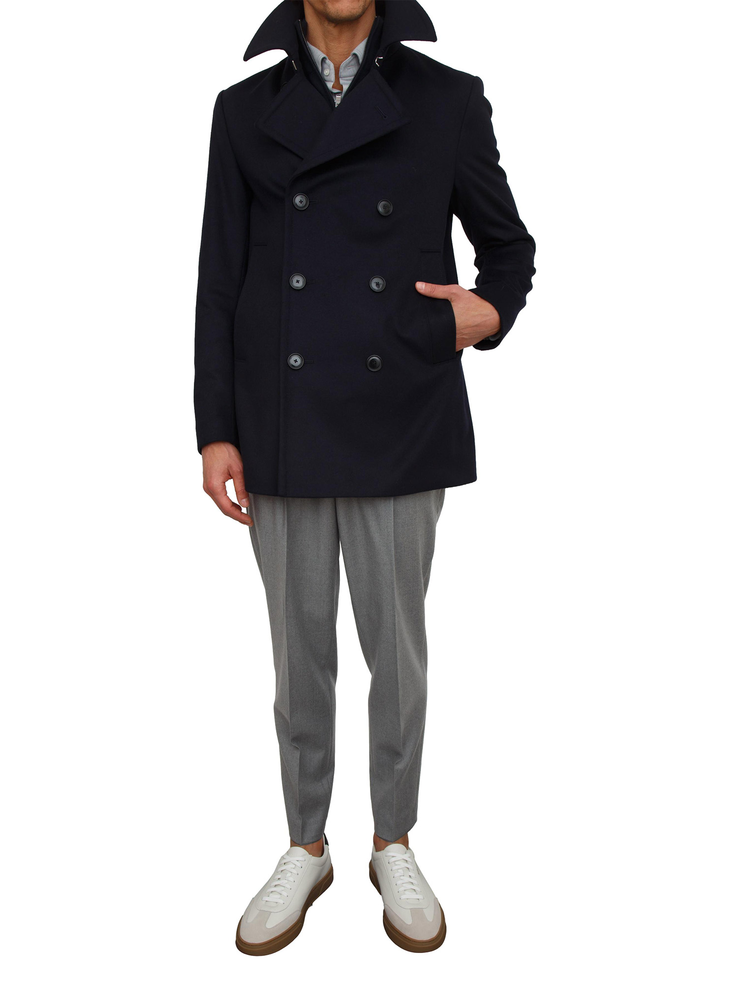 Cappotto doppiopetto Boss uomo in cashmere e lana blu