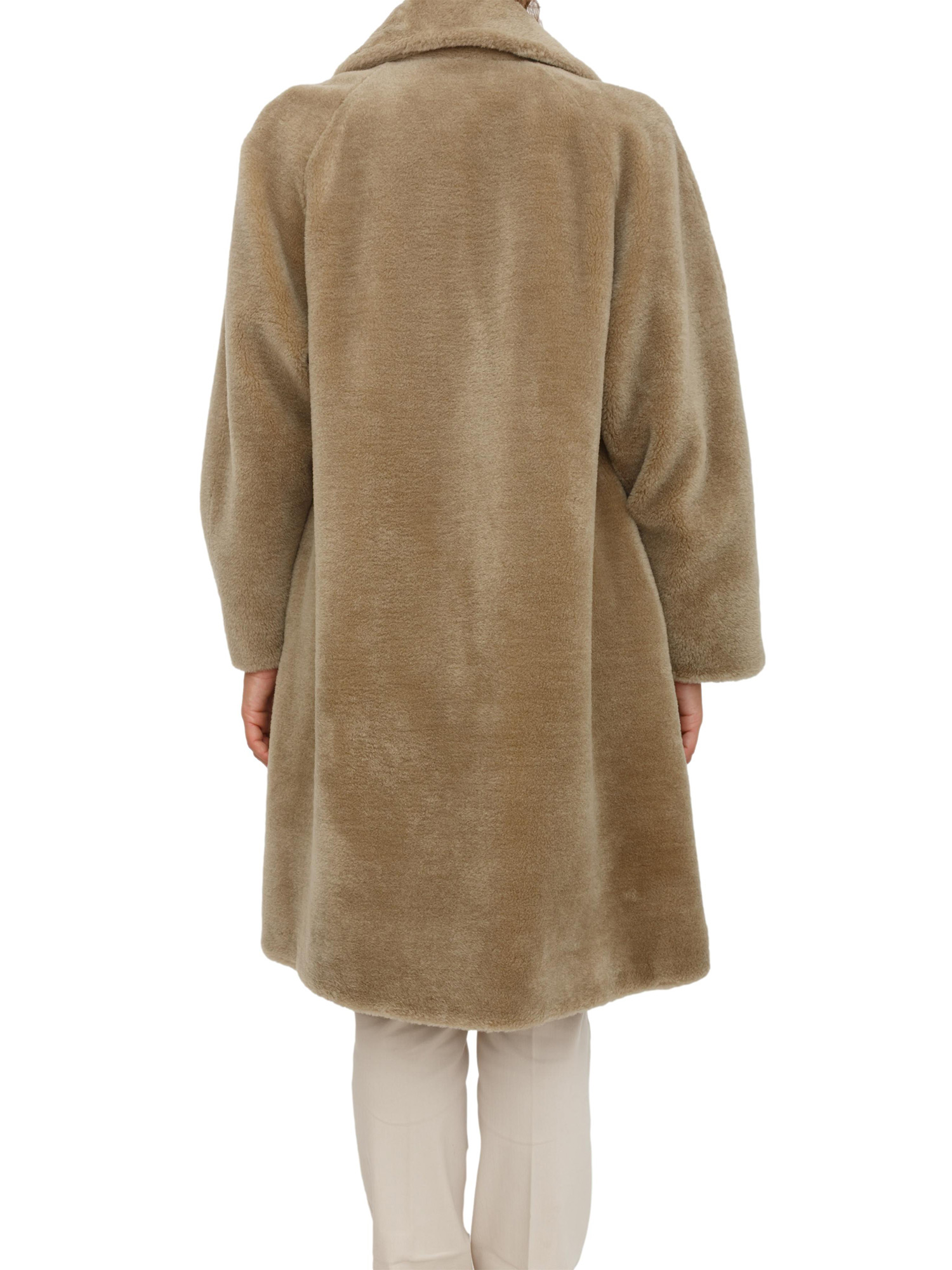 Cappotto doppiopetto Marella in maglia di lana effetto furry verde