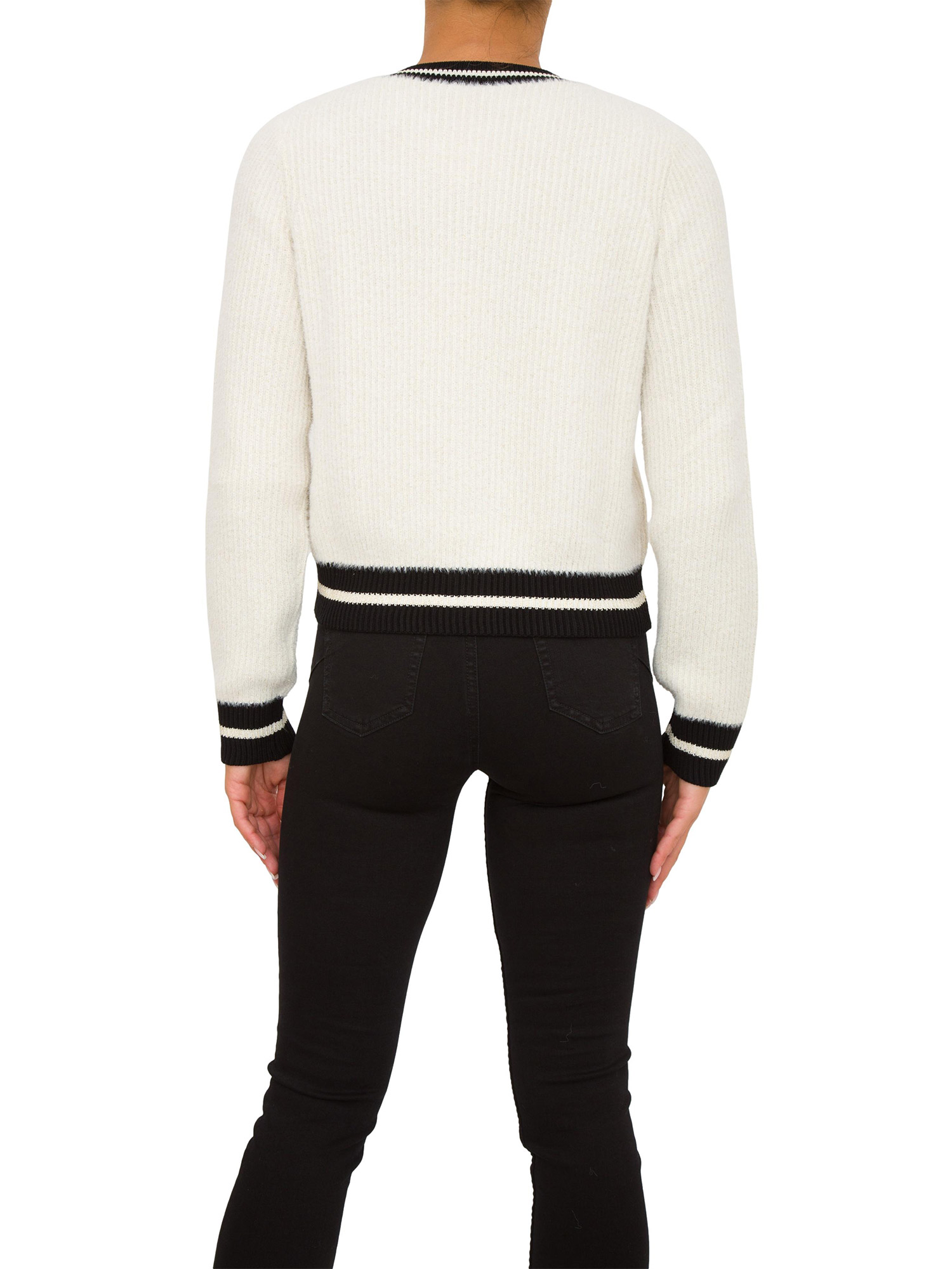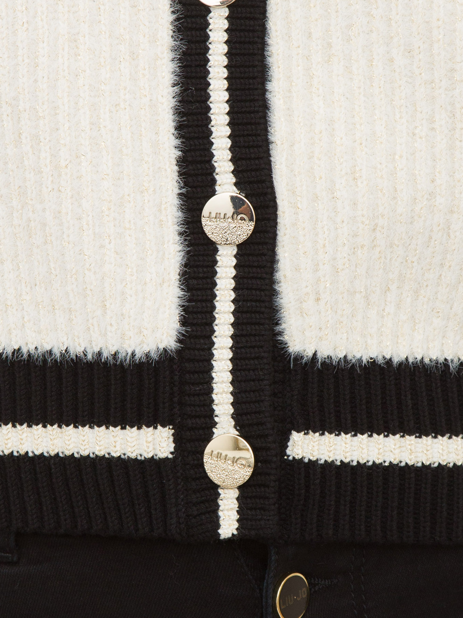 Cardigan da donna Liu-Jo realizzato in materiale sintetico, chiusura centrale tramite bottoni, girocollo e maniche lunghe con polsini elasticizzati.