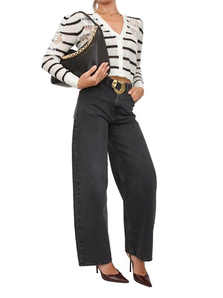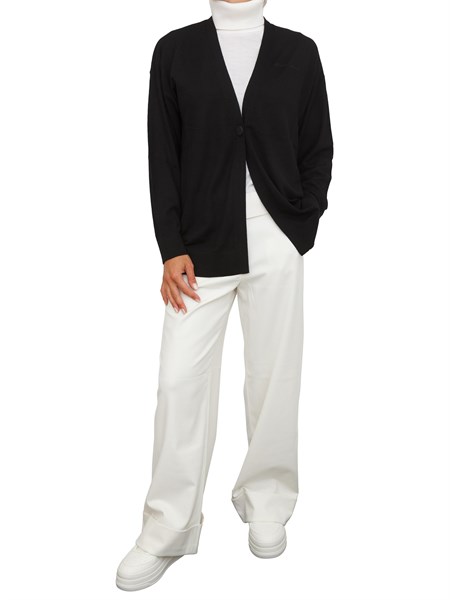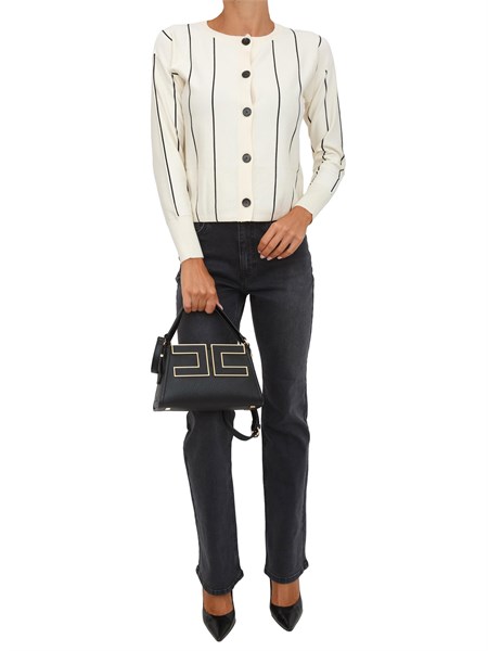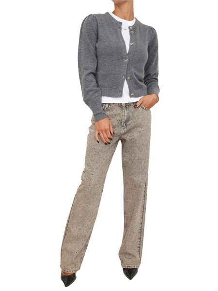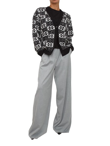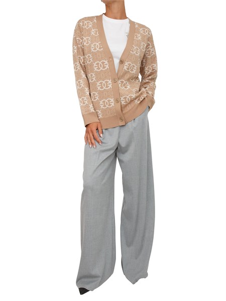 Cardigan lungo da donna Twinset in misto angora e lurex jacquard con logo Oval T, scollo a V, maniche lunghe, bottoni a pressione.