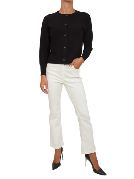 Cardigan Twinset in misto mohair panna e nero con pizzo e spacchi