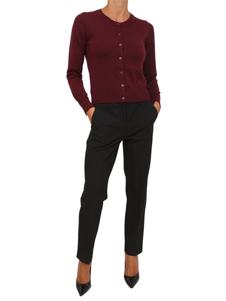Cardigan Twinset realizzato in misto mohair con lavorazione bicolore a righe e dettagli di pizzo applicati a ricamo e a intarsio. Design con maniche lunghe, profili rifiniti a costine, placchetta logo Oval T sul retro e linea morbida. La modella è alta 1.77 e indossa la taglia S.