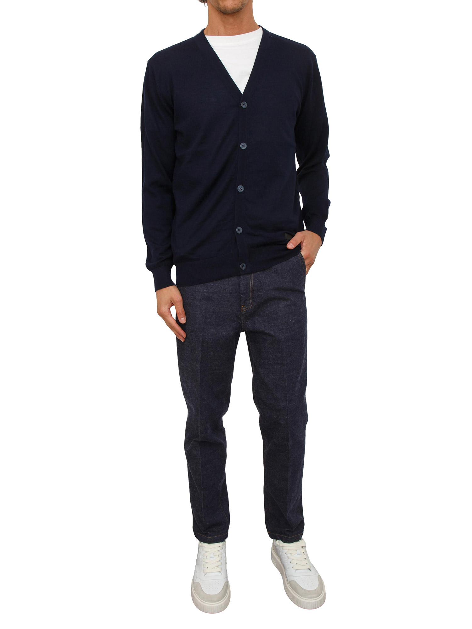 Cardigan uomo Richmond X realizzato in misto lana merino con vestibilità regular e chiusura con bottoni logati. Design essenziale e raffinato, arricchito da patch logo sul fondo sinistro e lavorazione a coste sui polsi e sul fondo. Il modello è alto 1.90m e indossa la taglia L.