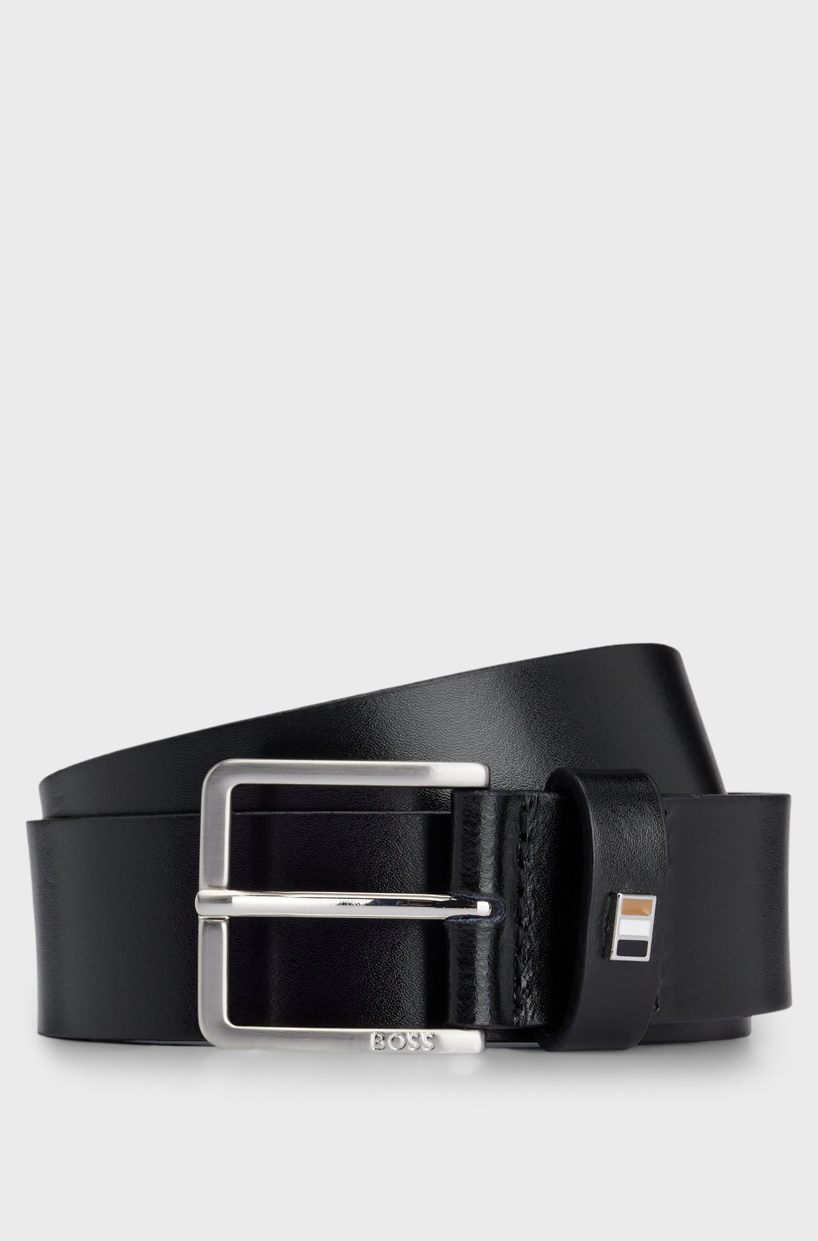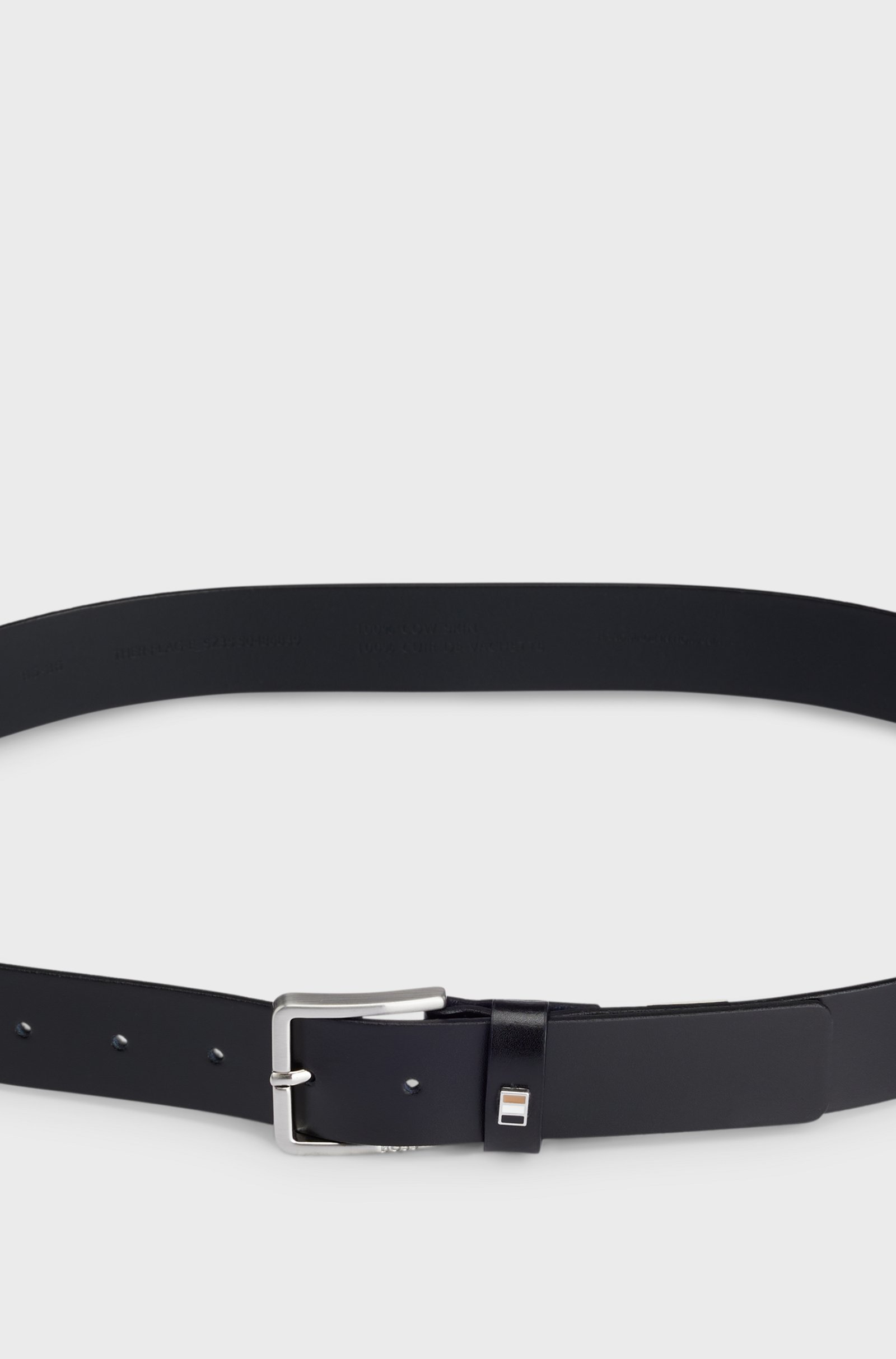 Cintura BOSS Uomo realizzata in pelle italiana con finitura liscia e dettaglio a strisce signature metallizzato sul passante. Per la migliore vestibilità, consigliamo di acquistare una taglia più grande rispetto alla tua taglia di vita. La pelle usata per realizzare questo prodotto proviene da concerie certificate.