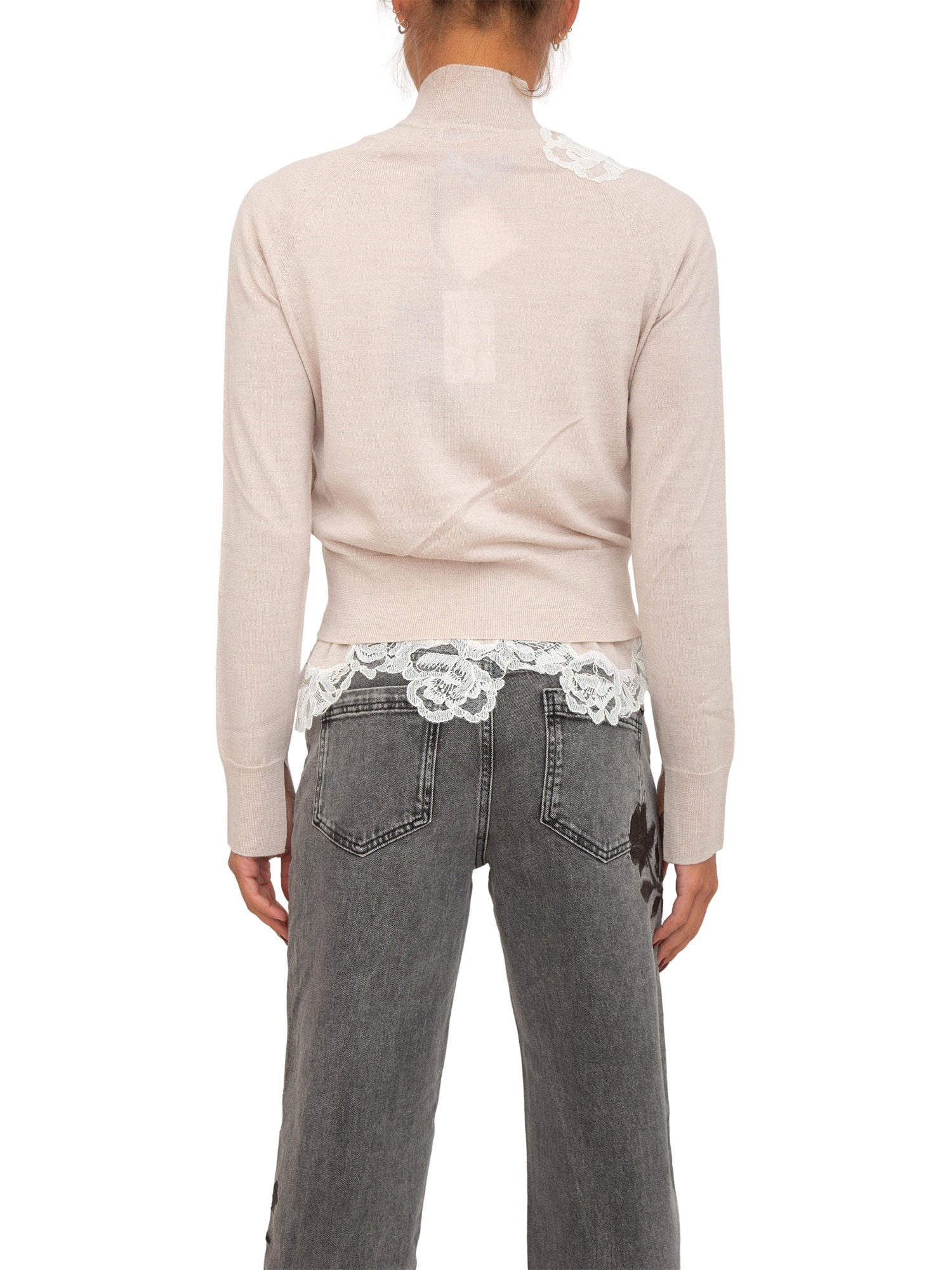 Twin-set Blugirl cardigan+lupetto in lana cipria con pizzo