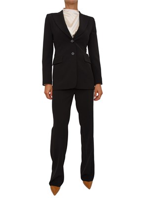 Tutta l'eleganza del completo blazer e pantalone: compatto ed elegante ma al contempo super confortevole per un city look da amare all day long. Giacca leggermente sfiancata con chiusura monopetto a due bottoni e pantalone a vita alta dal fit dritto. La modella è alta 1.72 e indossa la taglia 40.