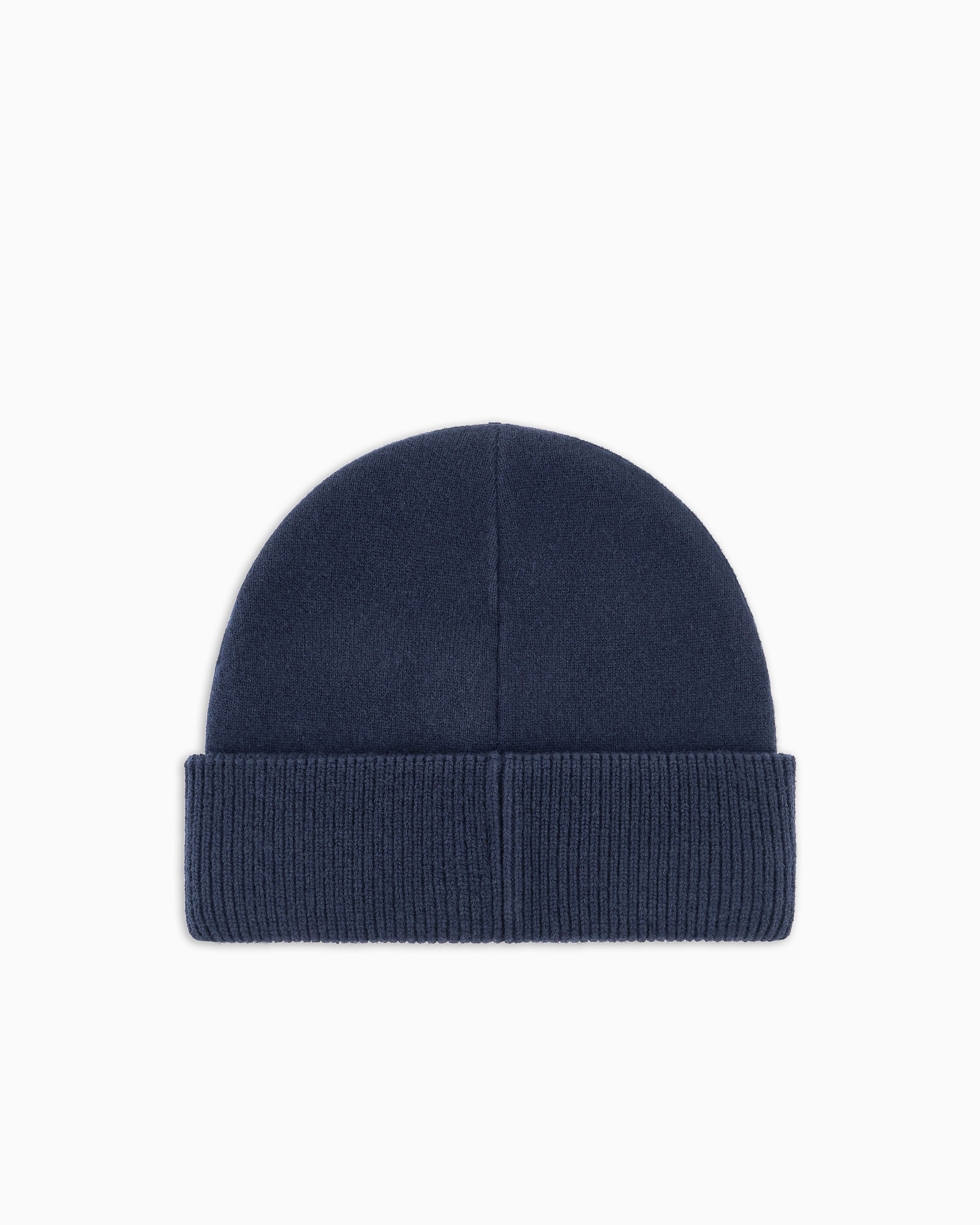 Cuffia Emporio Armani realizzato in maglia di lana con risvolto. La proposta è definita da un focus su praticità e stile ancora più funzionale e sofisticato: gli accessori rappresentano una linea concepita per gli spostamenti sia in viaggio che in città.