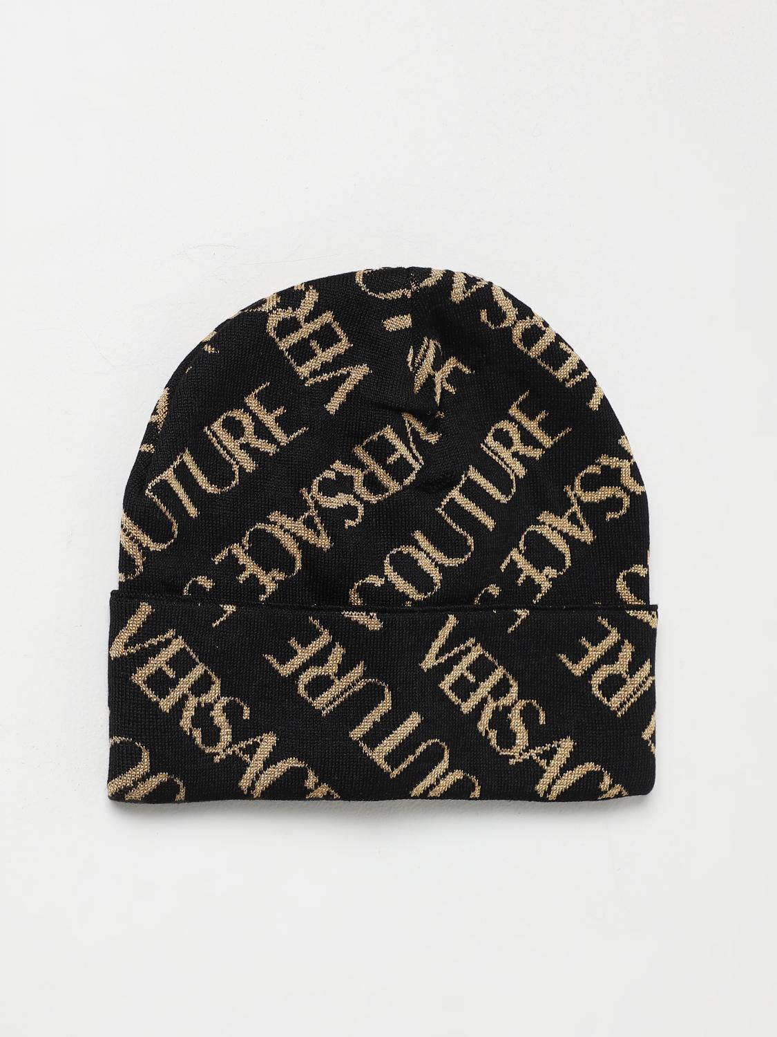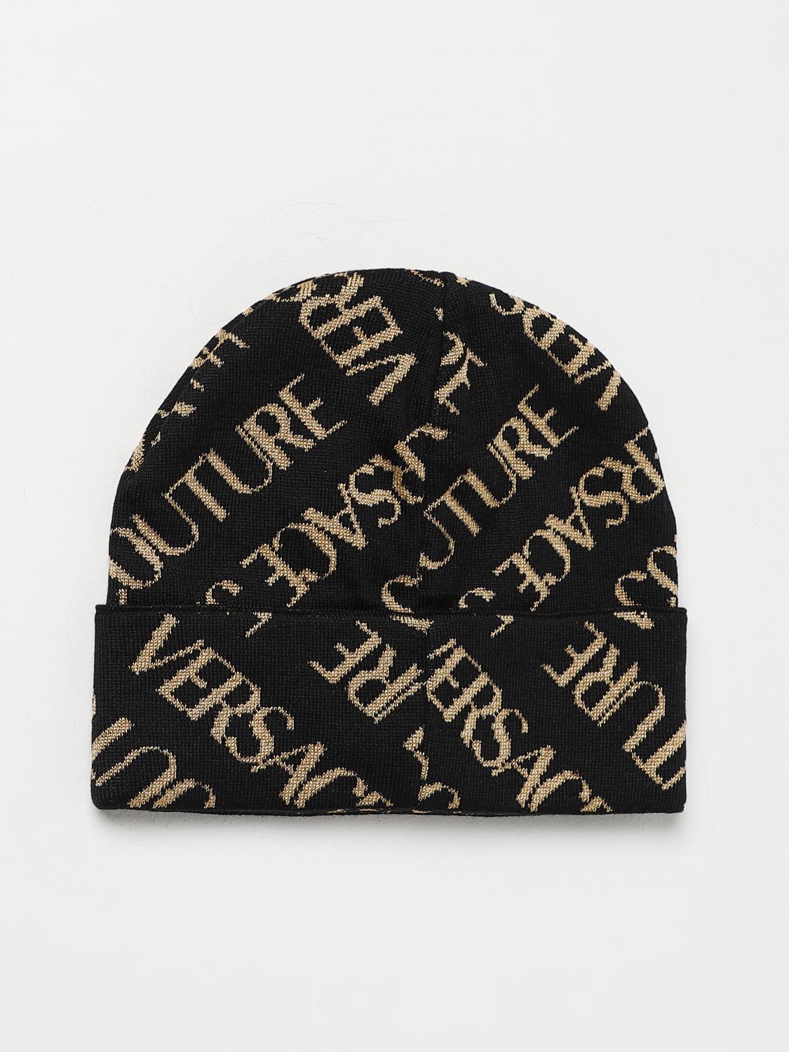 Cuffia Versace Jeans Couture in misto lana nera con logo lettering