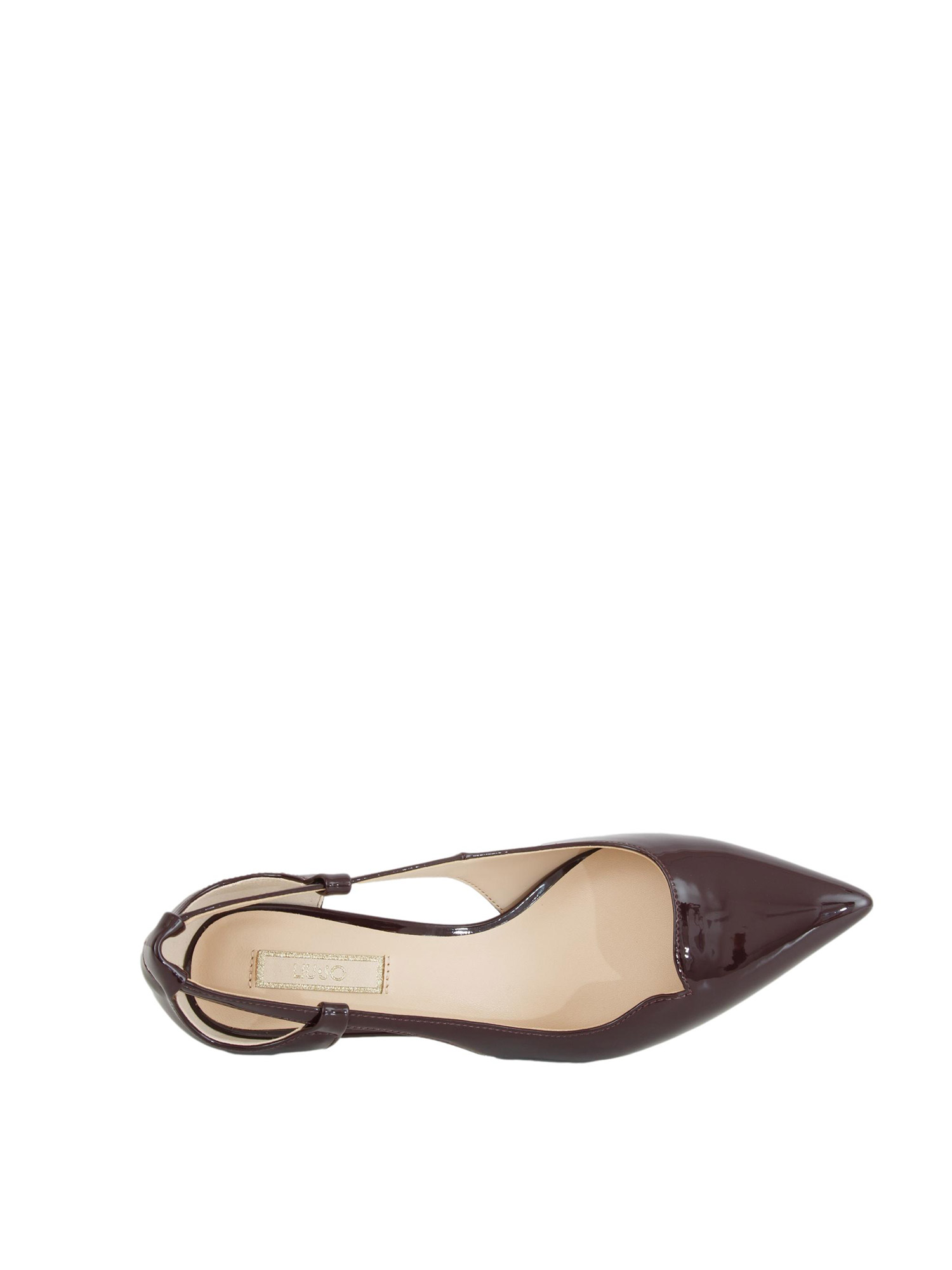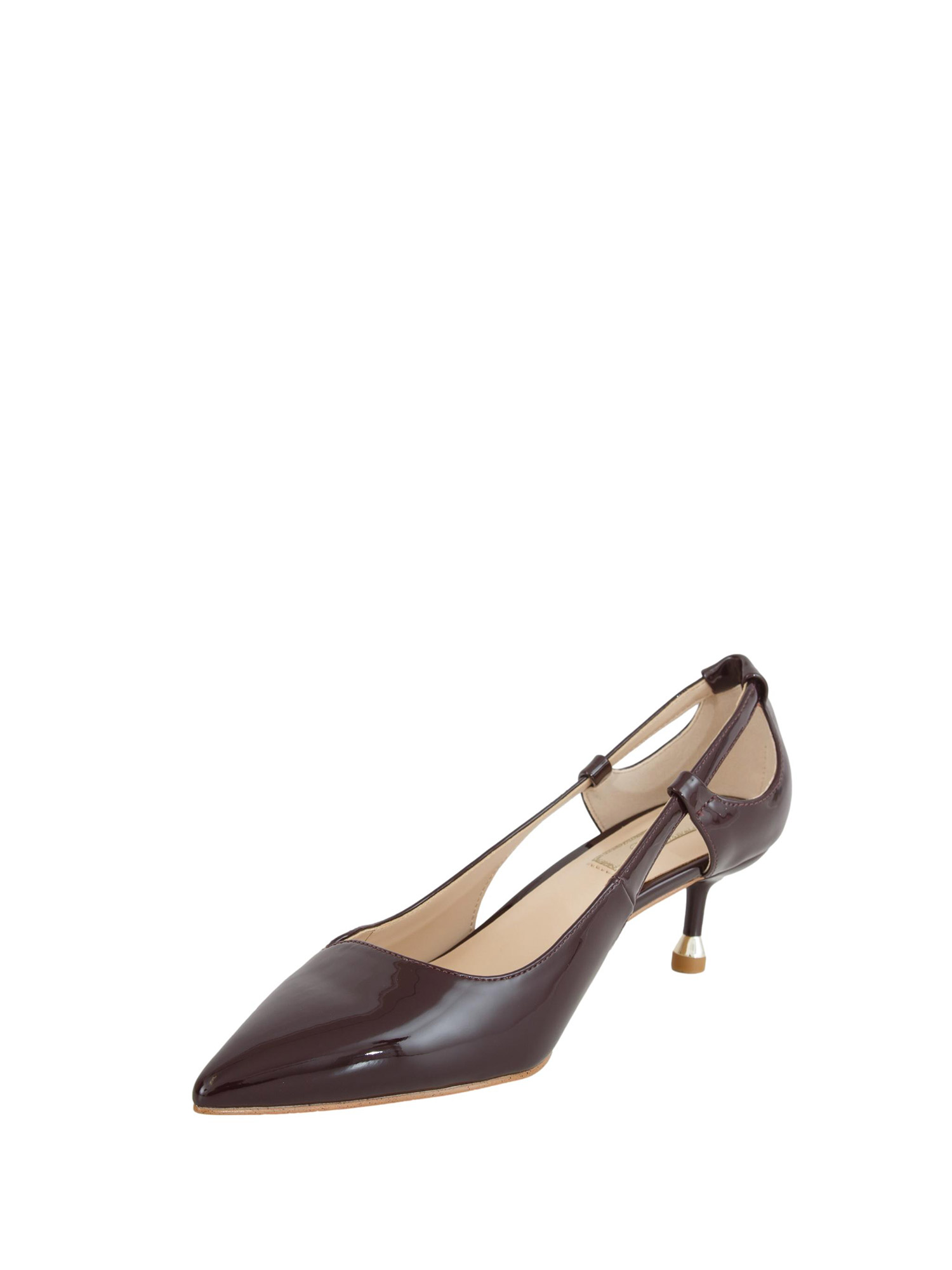 Décolleté in vernice, cut-out, punta affusolata, dettaglio scollo a cuore sul davanti, tacco basso a spillo, dettaglio metallizzato sul fondo che offre maggiore comfort ad ogni passo e accessorio logato sul dietro. Altezza tacco: 5,5 cm