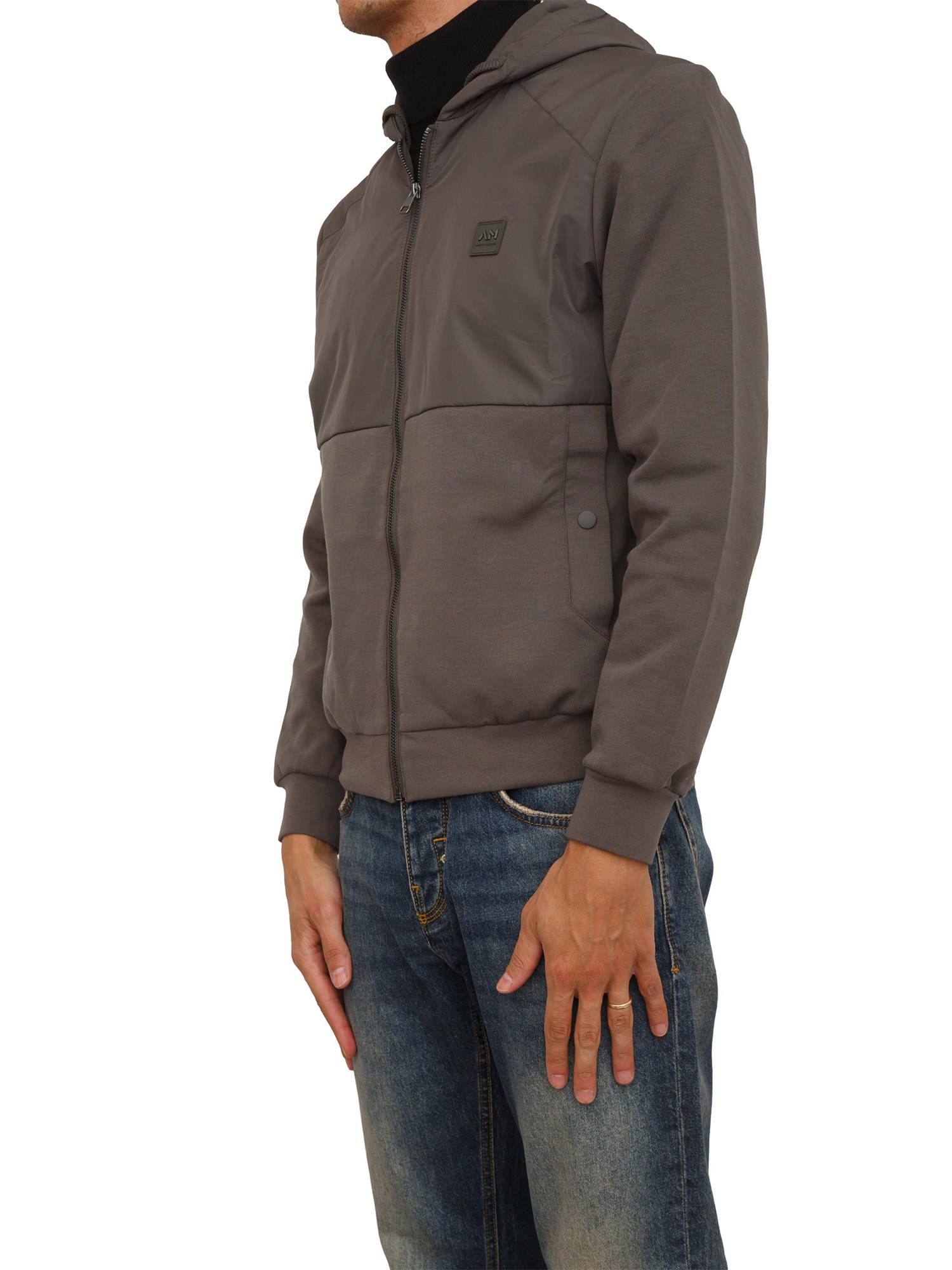 Felpa Antony Morato con zip e cappuccio in cotone interlock e tessuto tecnico verde