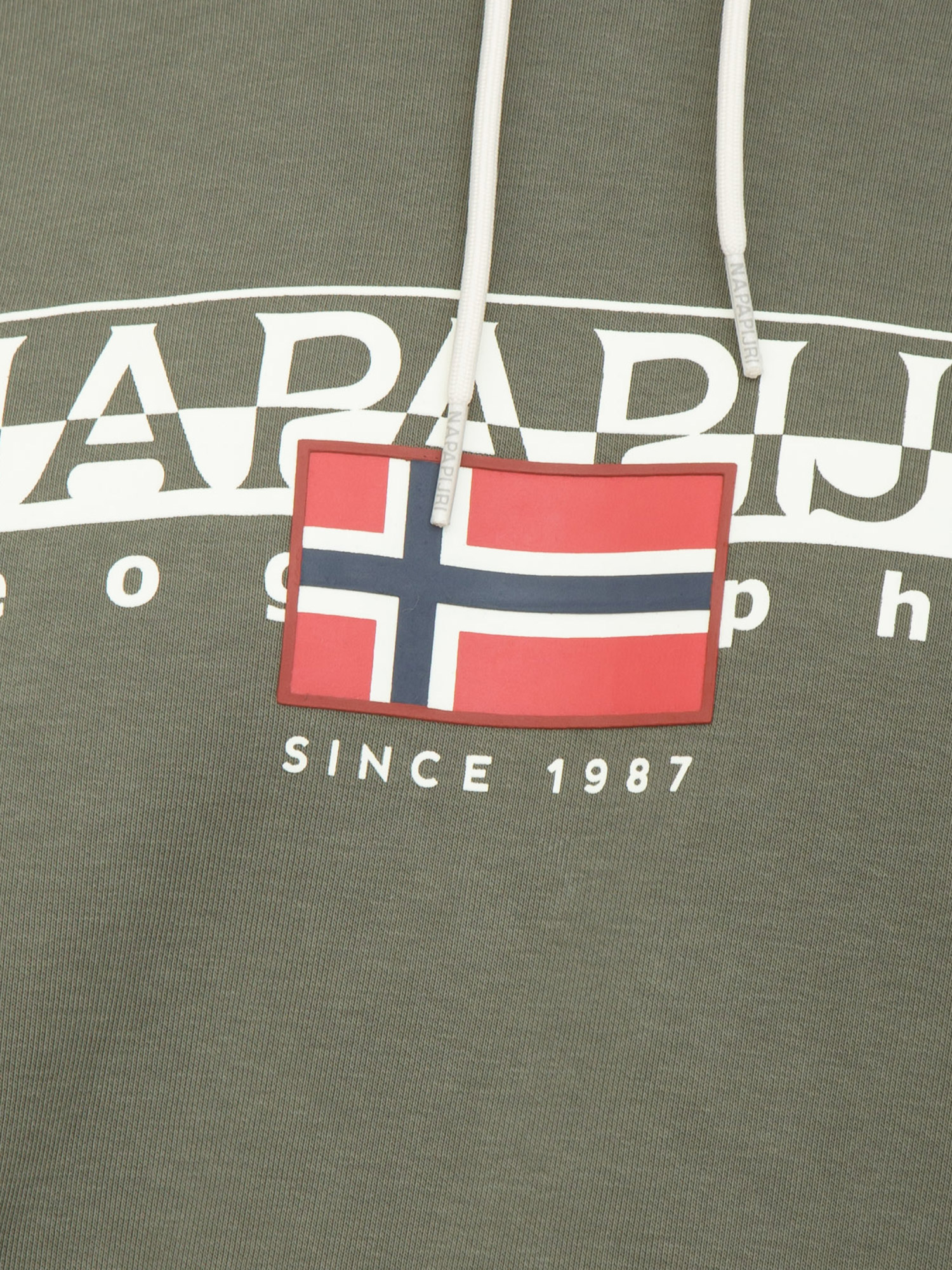 Dotata di cappuccio regolabile con coulisse e l’inconfondibile grafica della bandiera norvegese, la felpa Aylmer Napapijri è calda e confortevole, grazie alla vestibilità regolare e alla composizione in cotone. Il modello è alto 1.90m e indossa la taglia L.