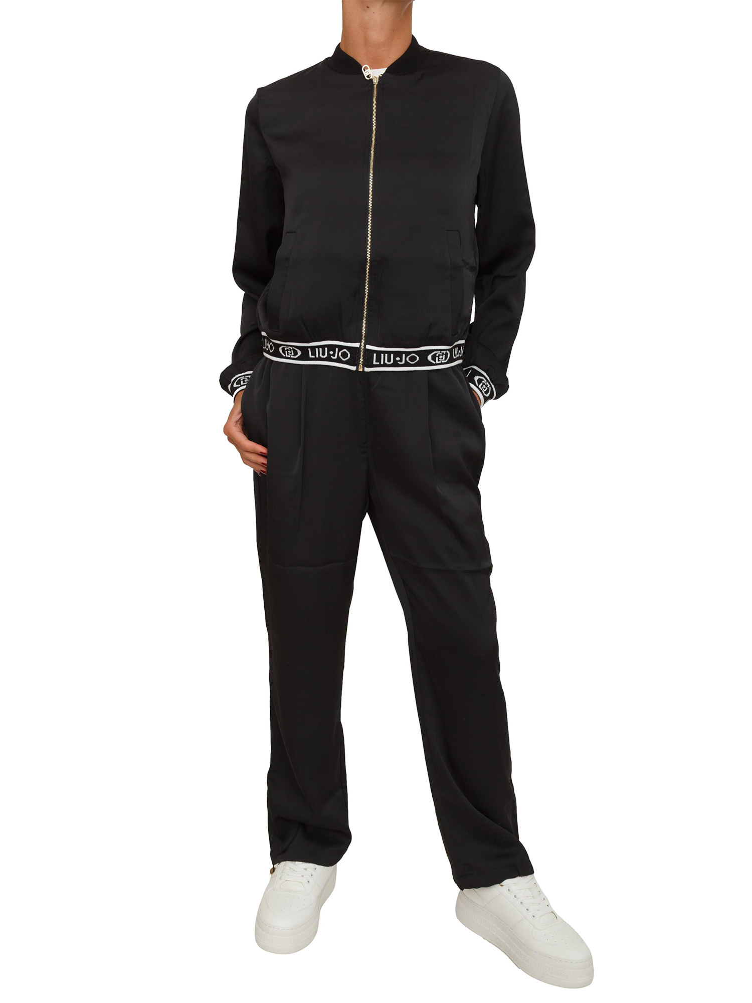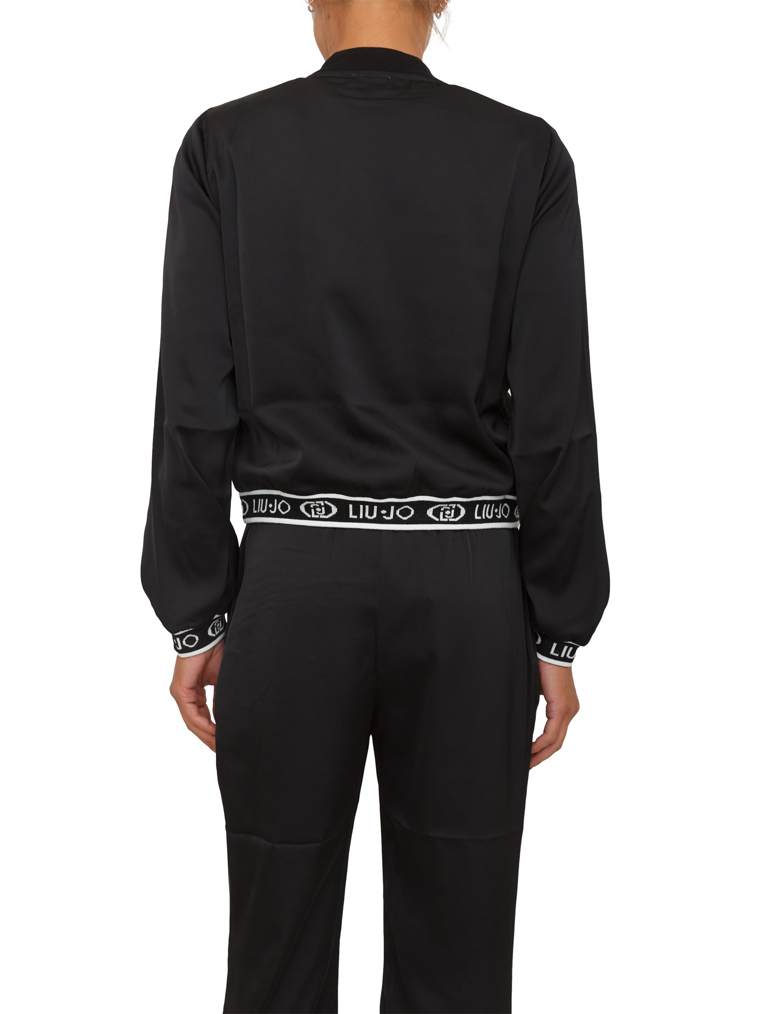 Felpa bomber Liu Jo donna in raso nero con logo