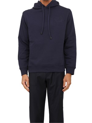 Felpa con cappuccio Etro uomo realizzata in misto cotone con logo Pegaso ricamato ton sur ton sul petto. Vestibilità regular, cappuccio con coulisse e polsini e fondo lavorati a costine. Il modello è alto 1.90m e indossa la taglia M.