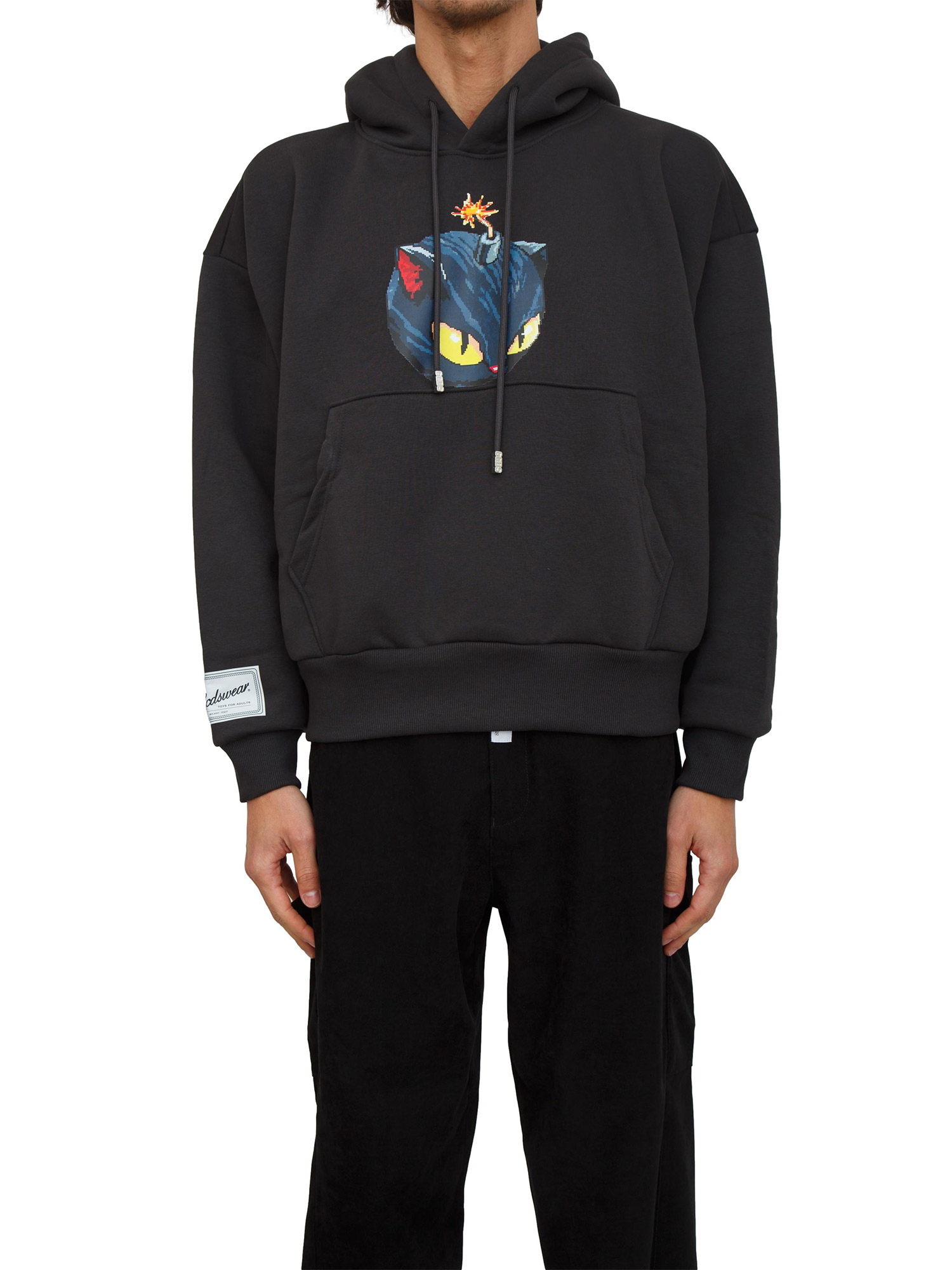 Felpa con cappuccio unisex GCDS realizzata in morbido jersey di cotone con stampa davanti e label logo applicata sulla manica. Cappuccio regolabile con lacci e finecorda logati. Maniche lunghe con polsino e tasca a marsupio. Il modello è alto 1.90m e indossa la taglia M.