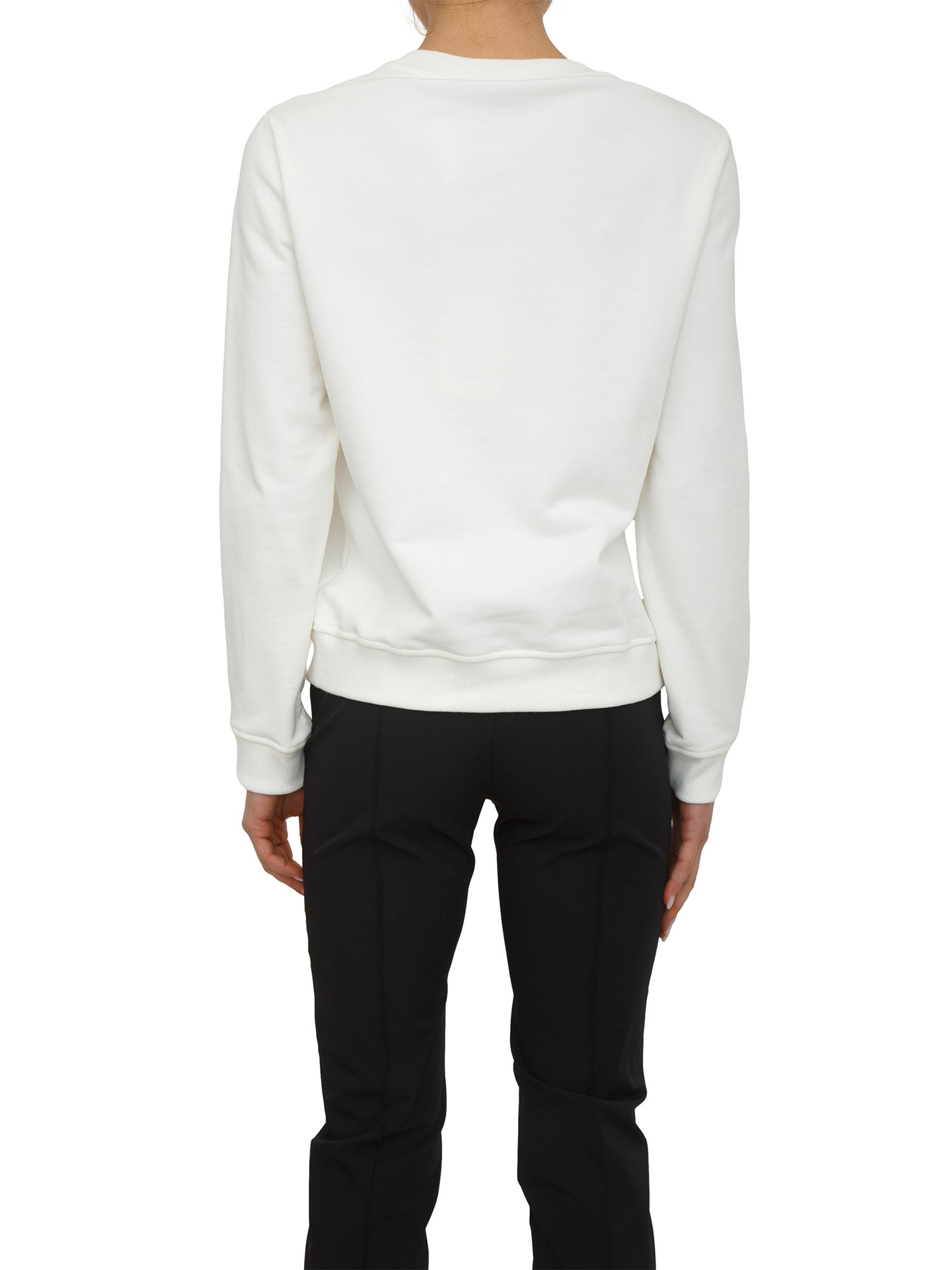 Felpa in cotone Elisabetta Franchi con girocollo e maniche con polsini a costine. Personalizzata con logo embossed sul davanti, ottenuto con tecnica a rilievo per un effetto 3D. I tagli rifiniti con impunture aggiungono definizione. Vestibilità over. La modella è alta 1.72 e indossa la taglia 40.