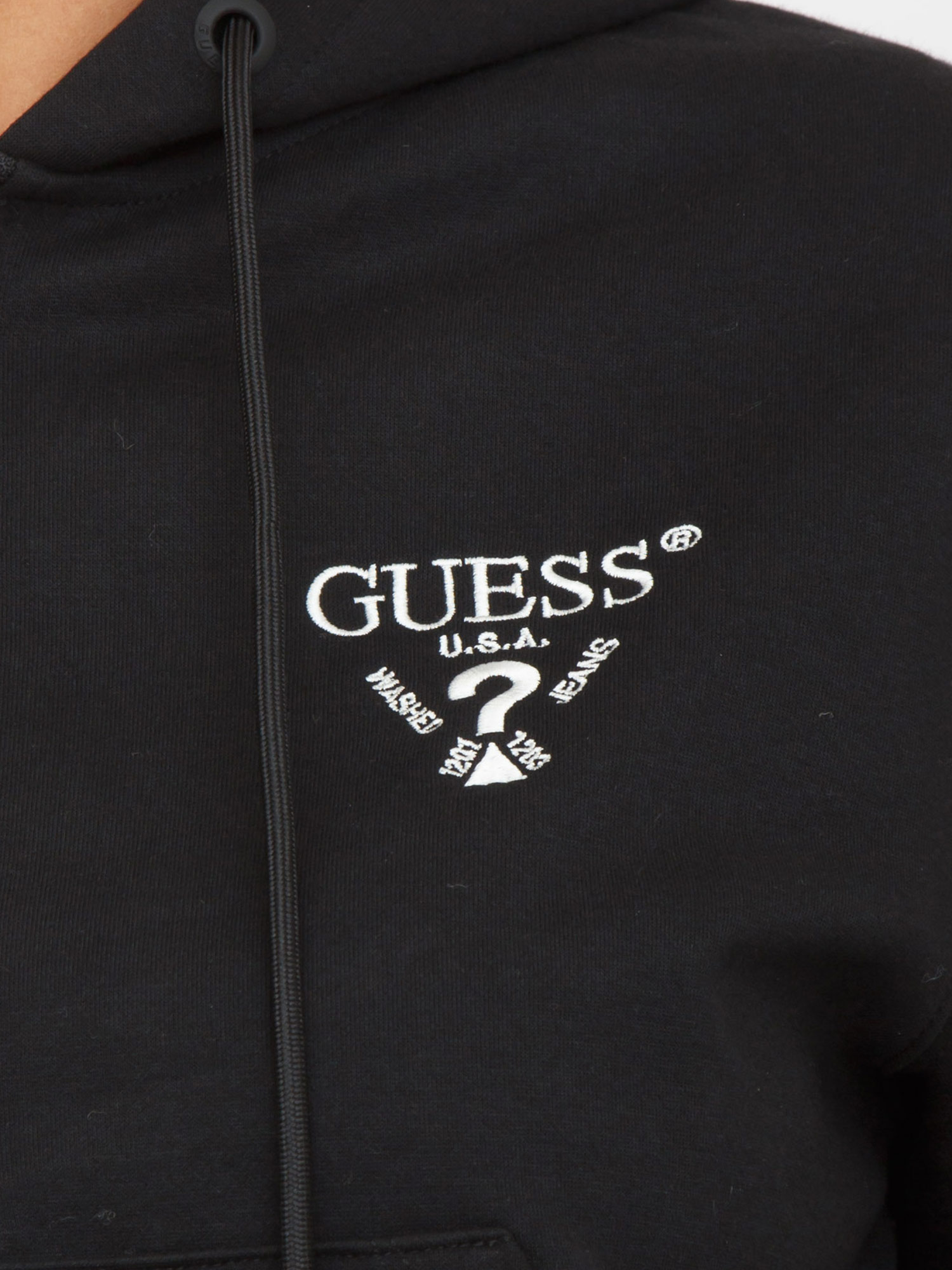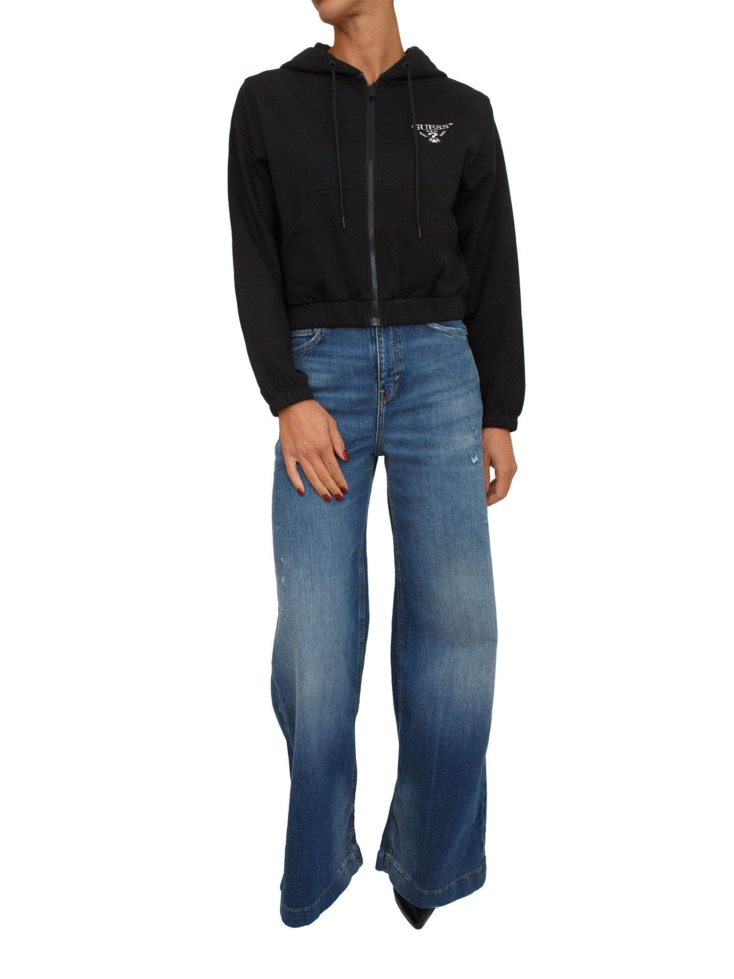 Felpa Guess Jeans donna in cotone nero con cappuccio