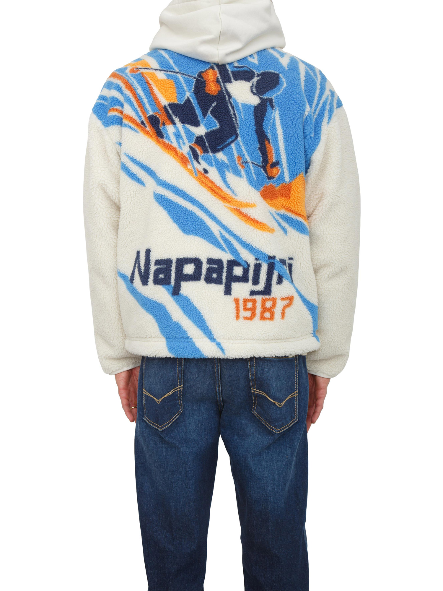 Felpa in pile Fiemme Napapijri in teddy bianco con stampa