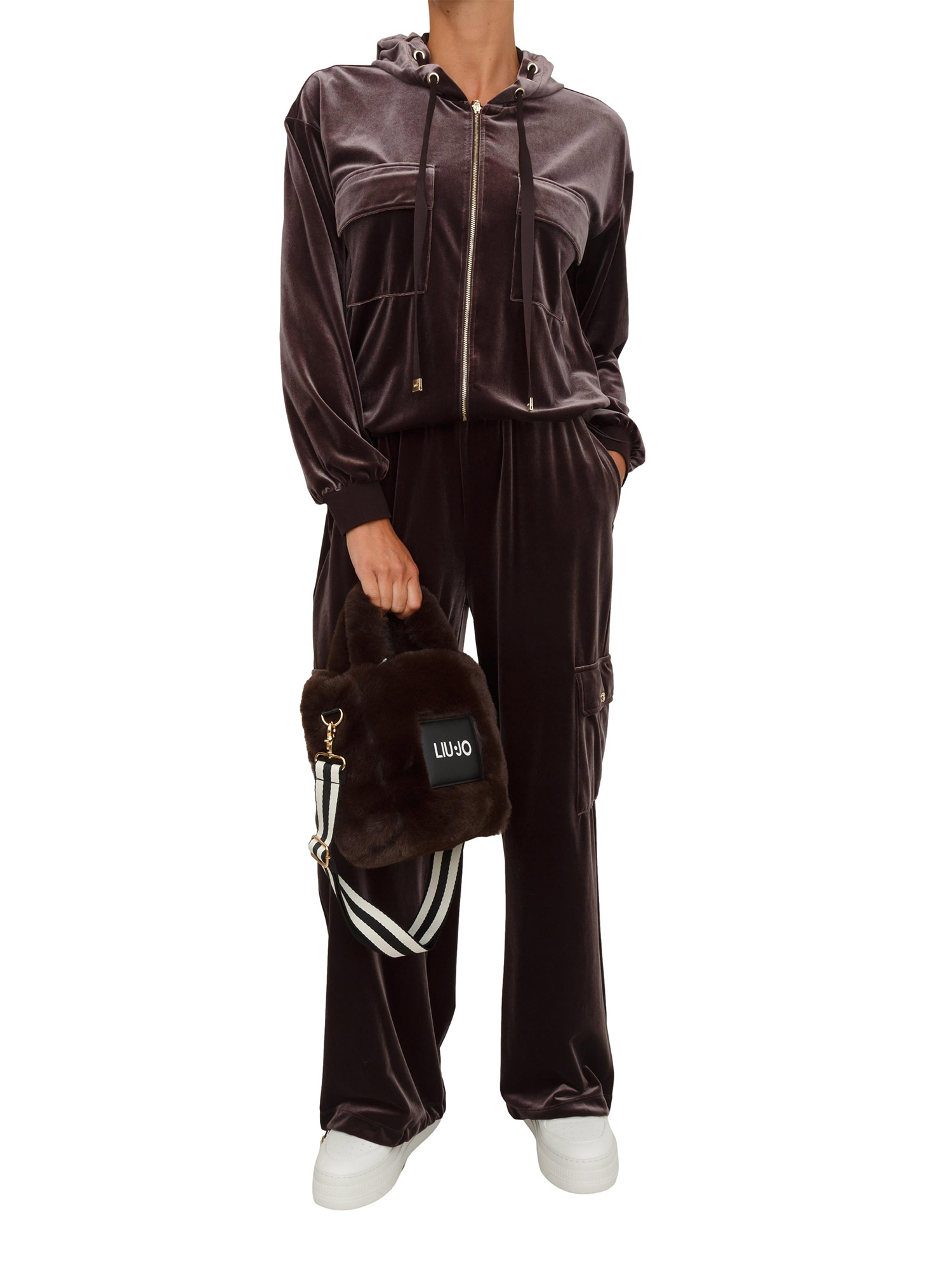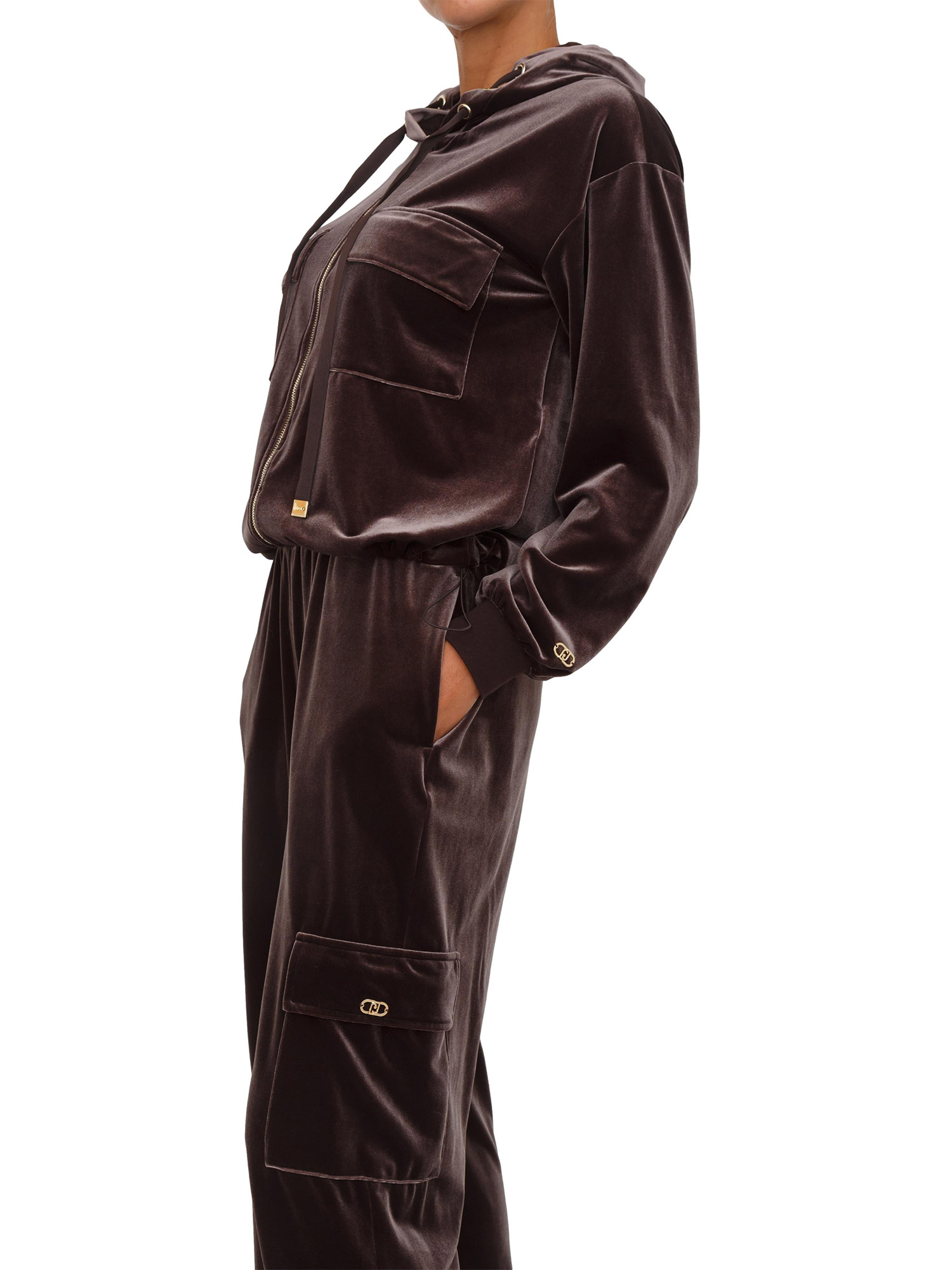 Felpa Liu Jo donna con cappuccio in ciniglia stretch marrone