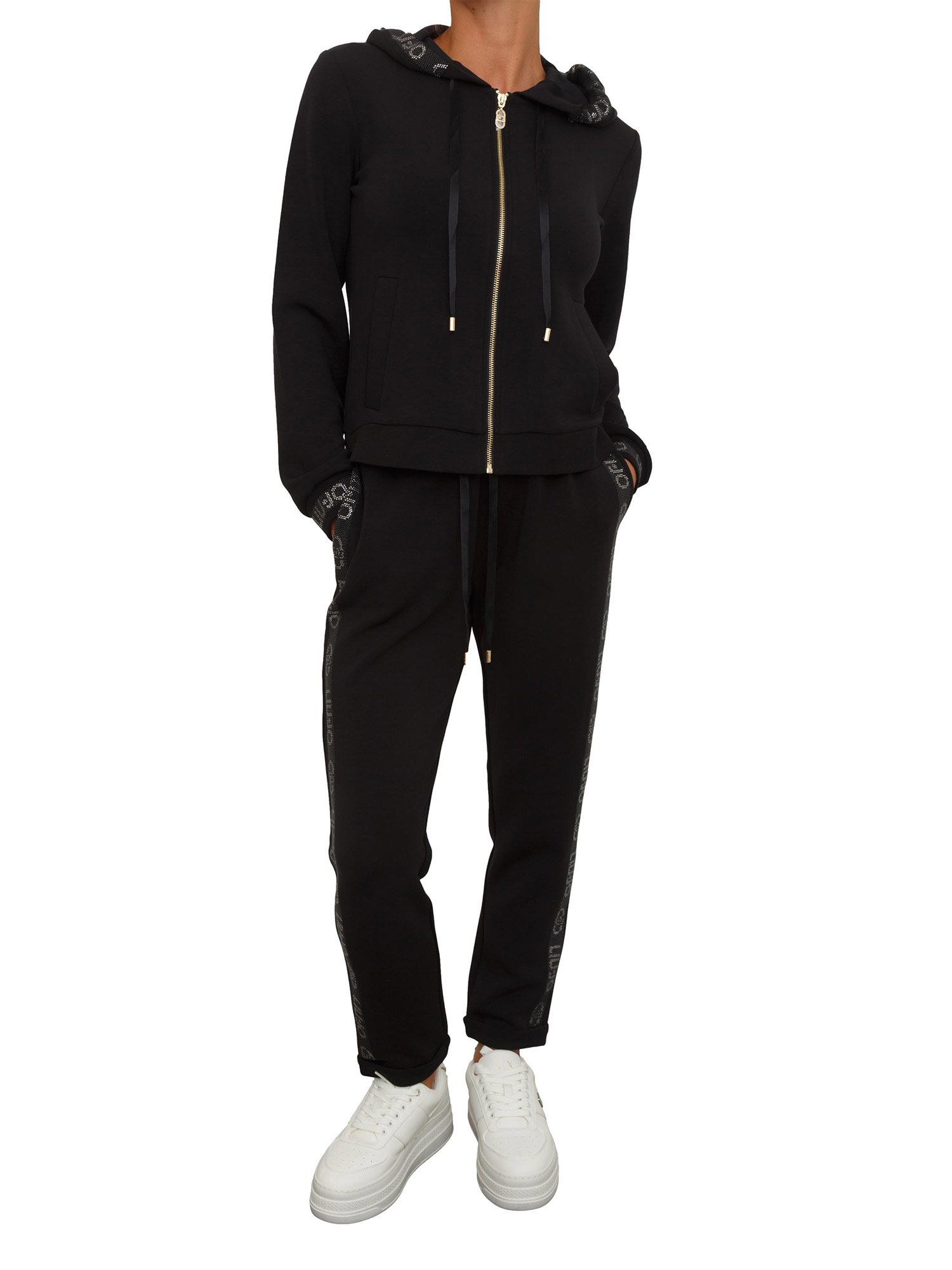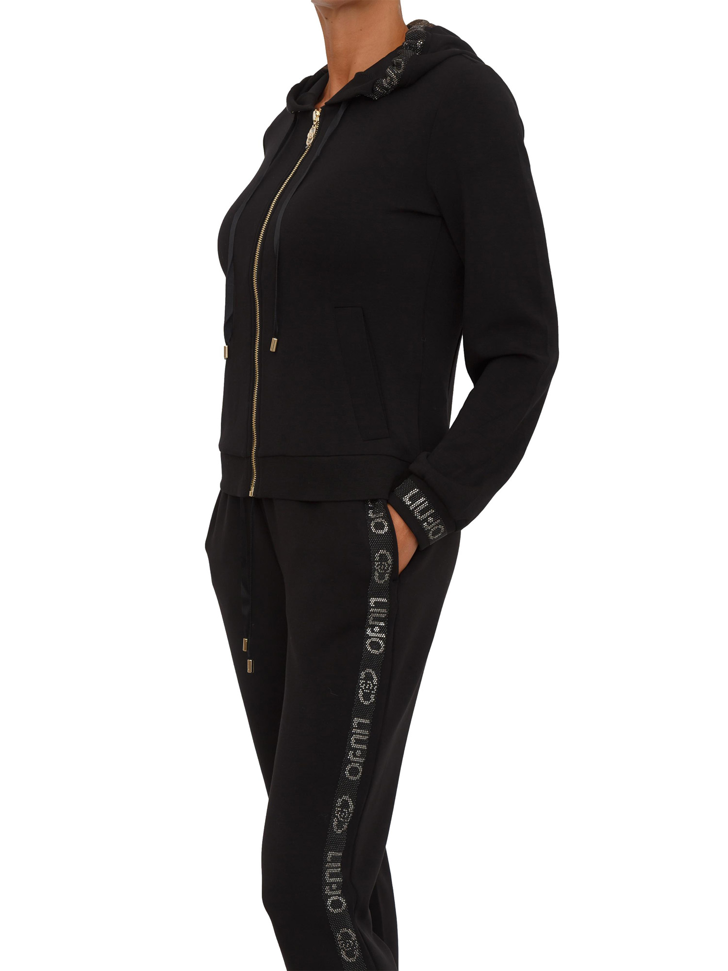 Felpa Liu Jo donna in cotone nero con bordo strass logo