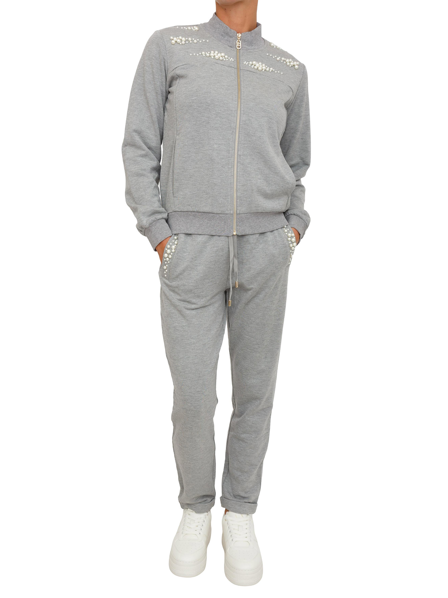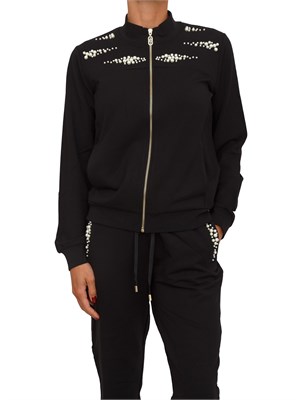 Felpa Liu Jo donna realizzata in misto viscosa stretch con collo alto e perle applicate sulle spalle. Dotata di tasche sui lati e tirazip logata. La modella è alta 1.72 e indossa la taglia XS.
