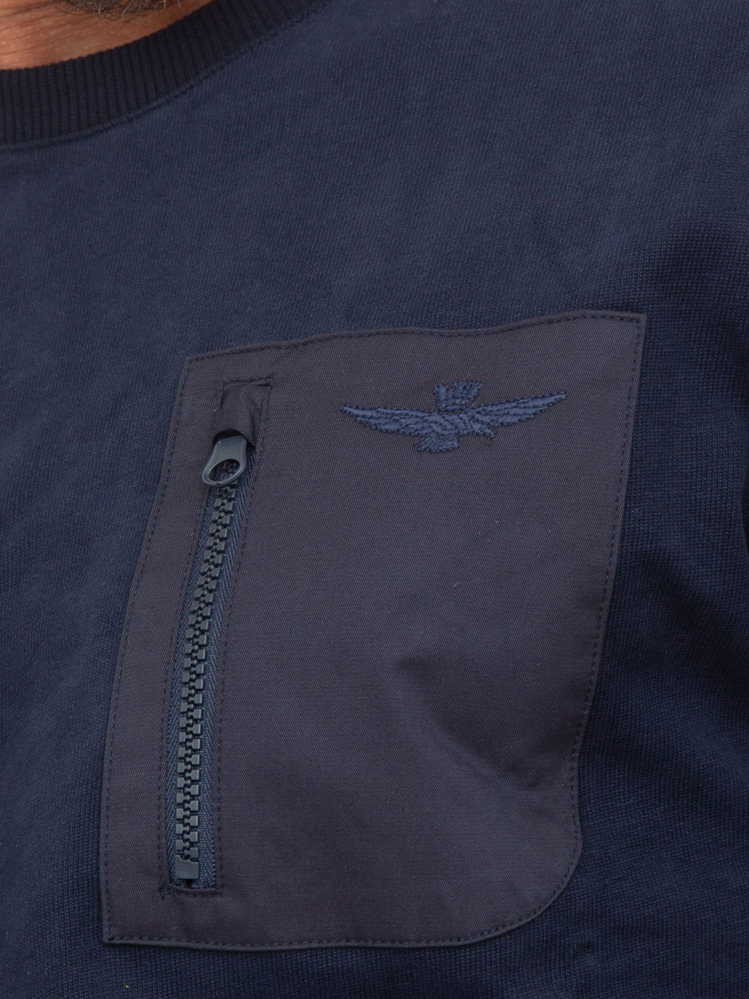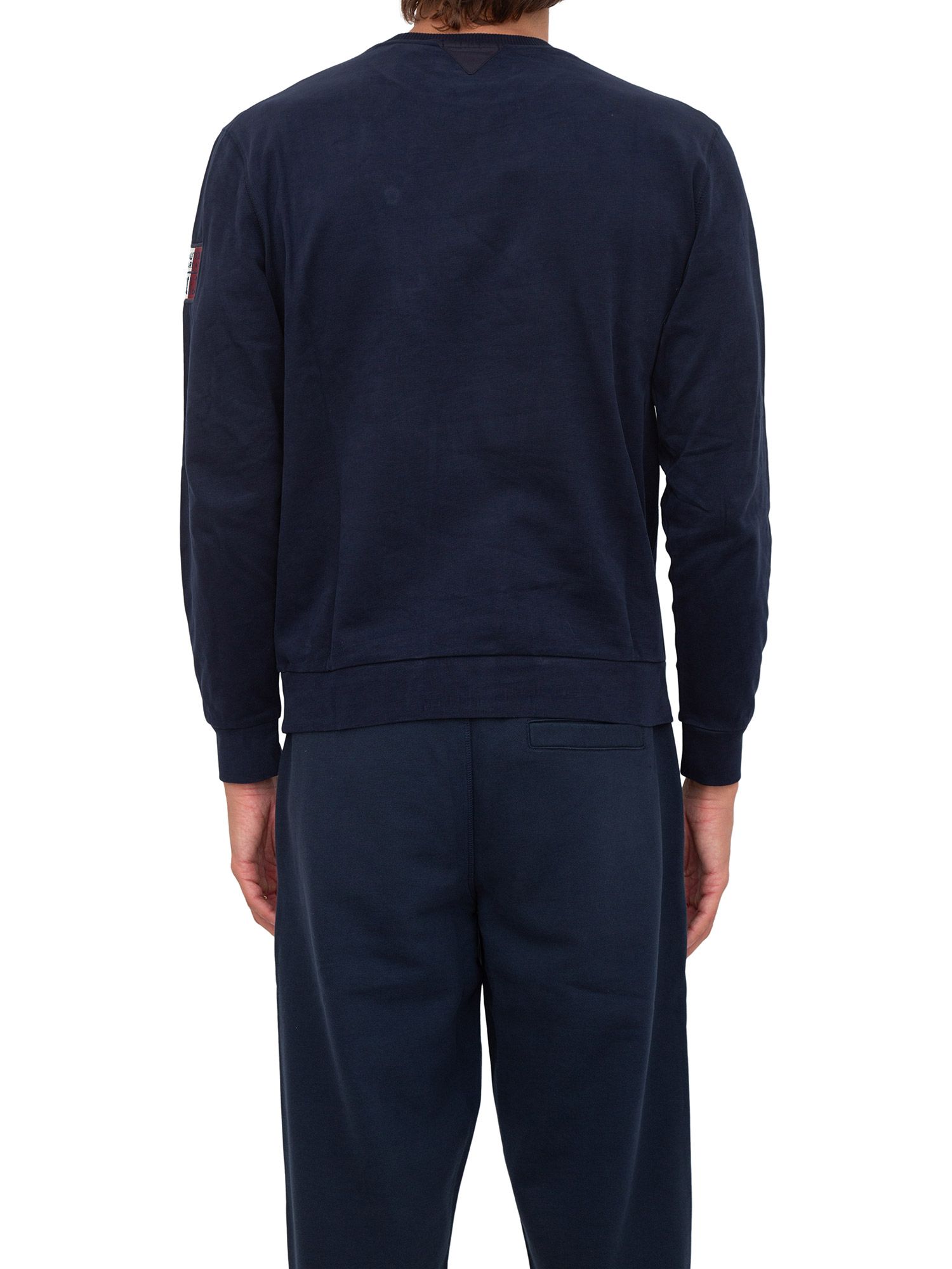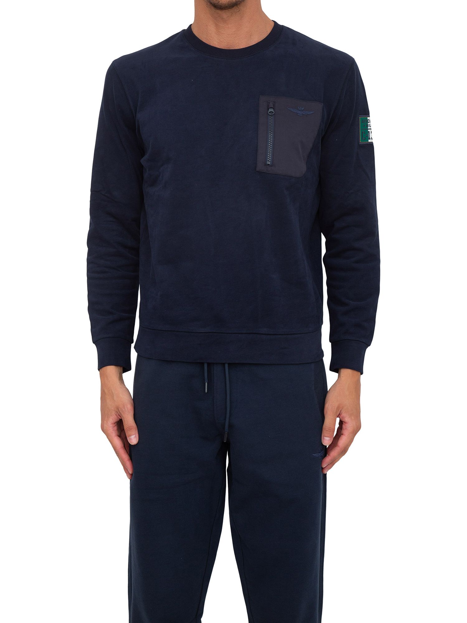 Felpa girocollo morbida A.M. realizzata in puro cotone e naylon riciclato. Taschino sul petto e tricolore sulla manica completano il look.