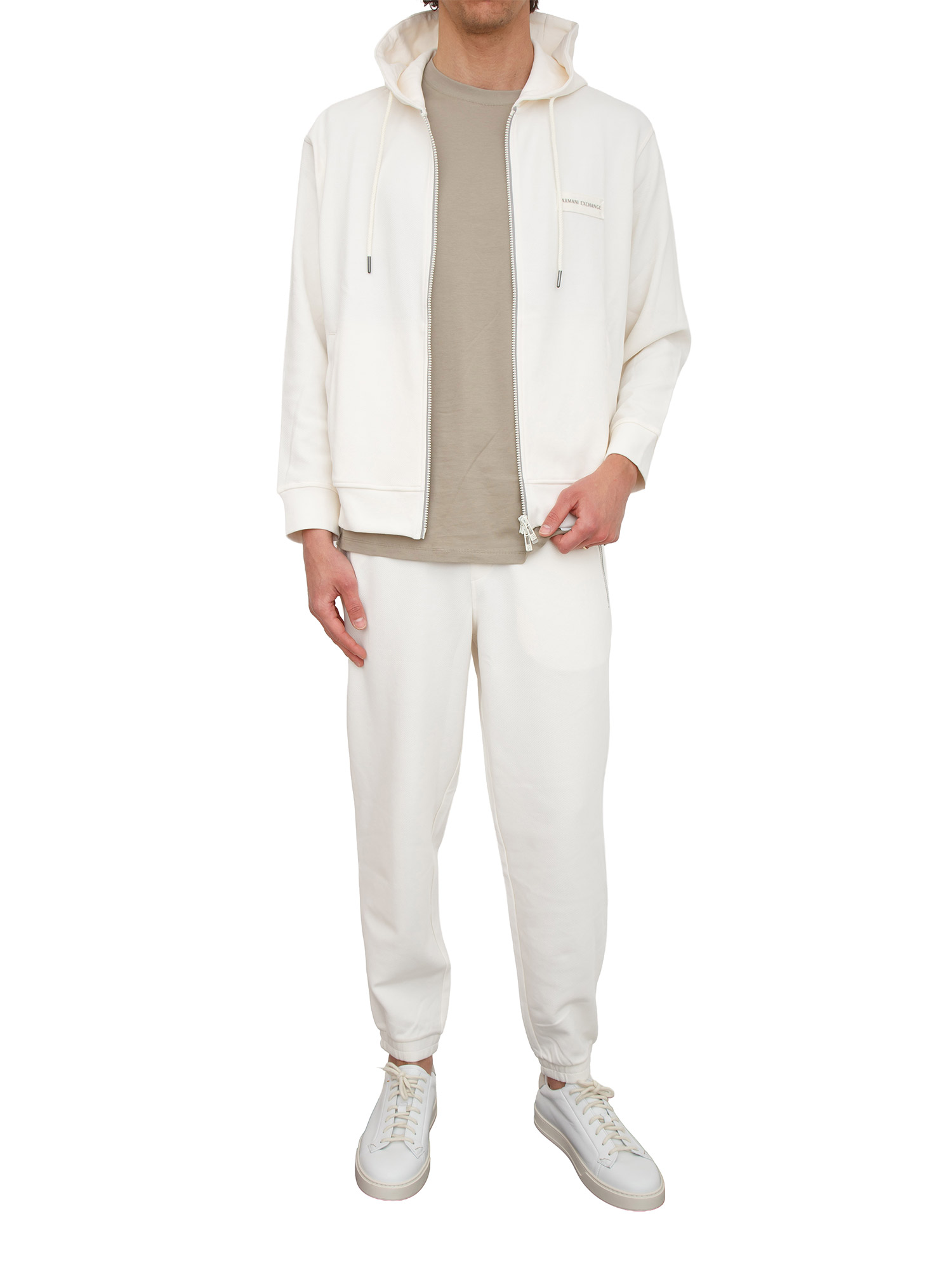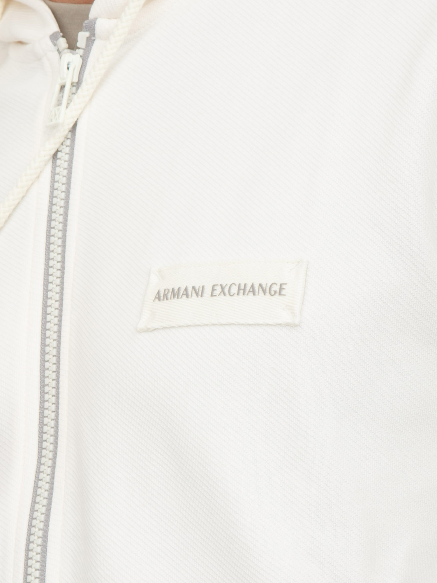 Essenziale e versatile, questa felpa uomo Armani Exchange è pensata per un look pulito e moderno. Realizzata in morbido cotone, offre comfort e praticità, ideale per l’uso quotidiano. Il design è caratterizzato da una chiusura frontale con zip, cappuccio regolabile con coulisse e tasche laterali discrete. Il modello è alto 1.90m e indossa la taglia M.