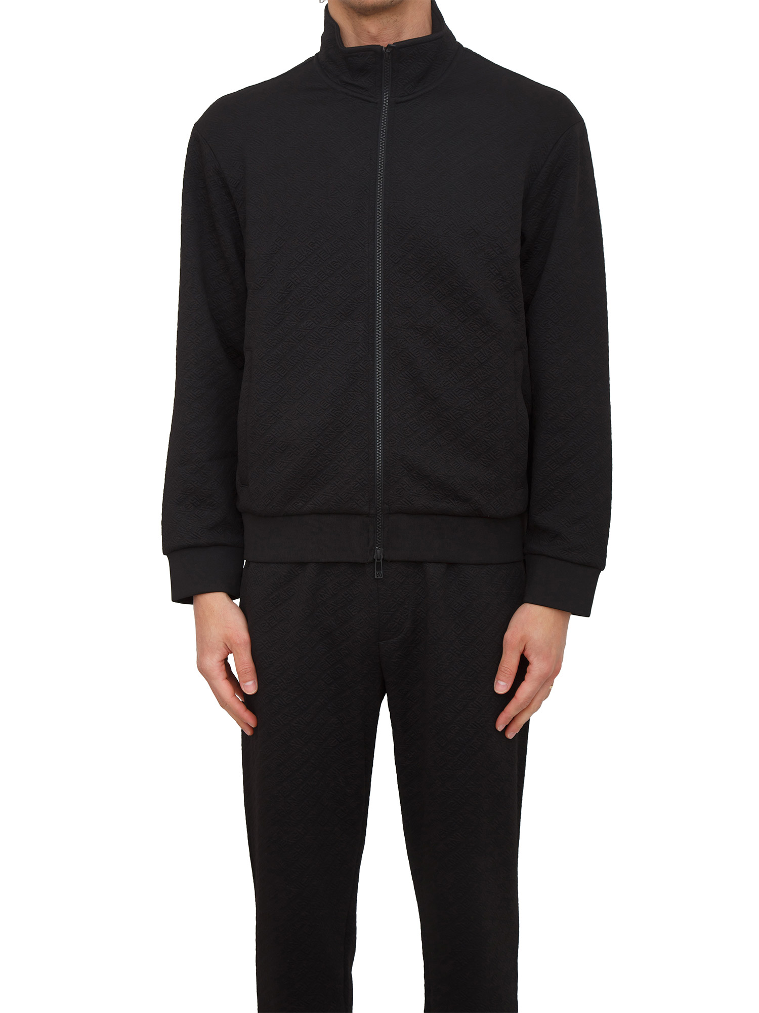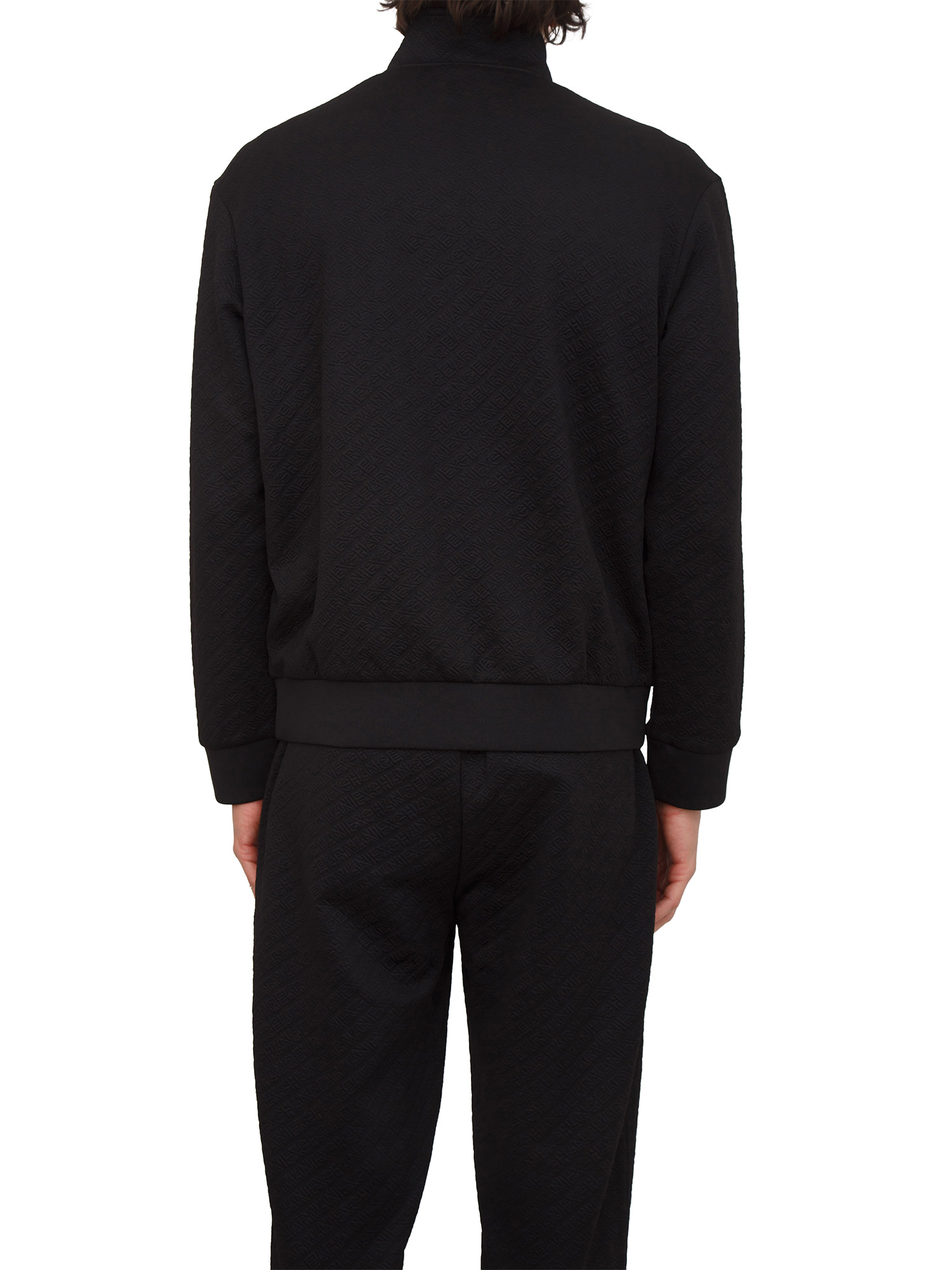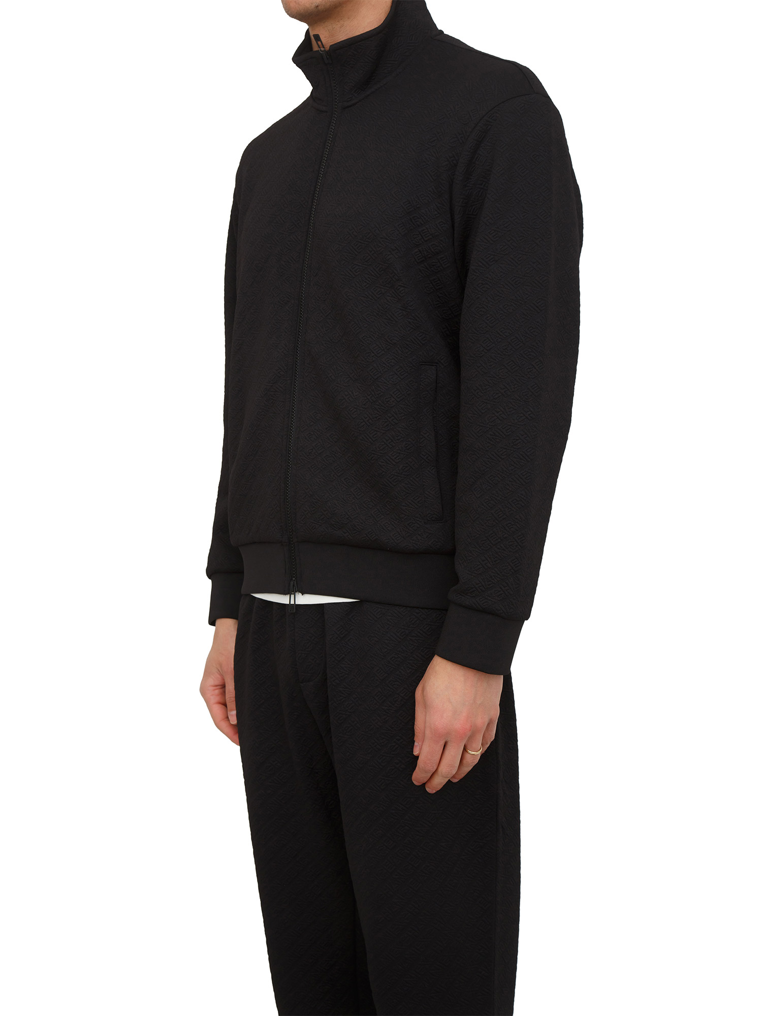 Felpa uomo Armani Exchange realizzata in tessuto elasticizzato con logo jacquard all over tono su tono. Design dotato di zip a tutta lunghezza, con lavorazione a costine sui fondi. Bella ed elegante per un look casual chic. Il modello è alto 1.90m e indossa la taglia M.