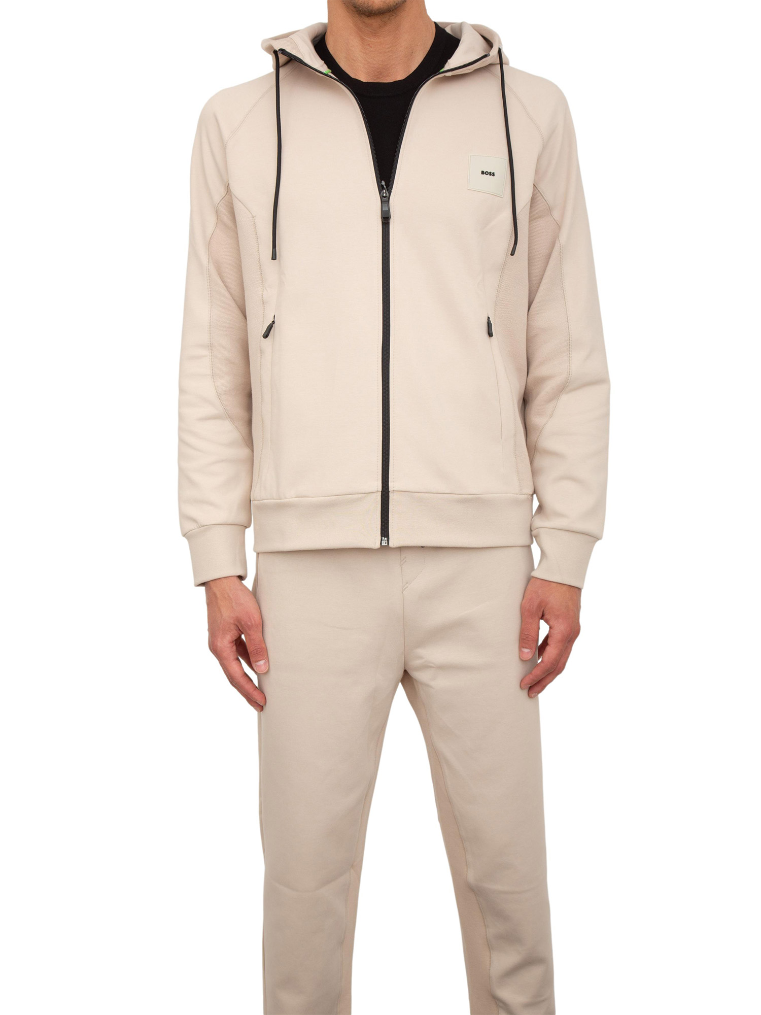 Felpa con cappuccio Boss beige con zip e toppa con logo