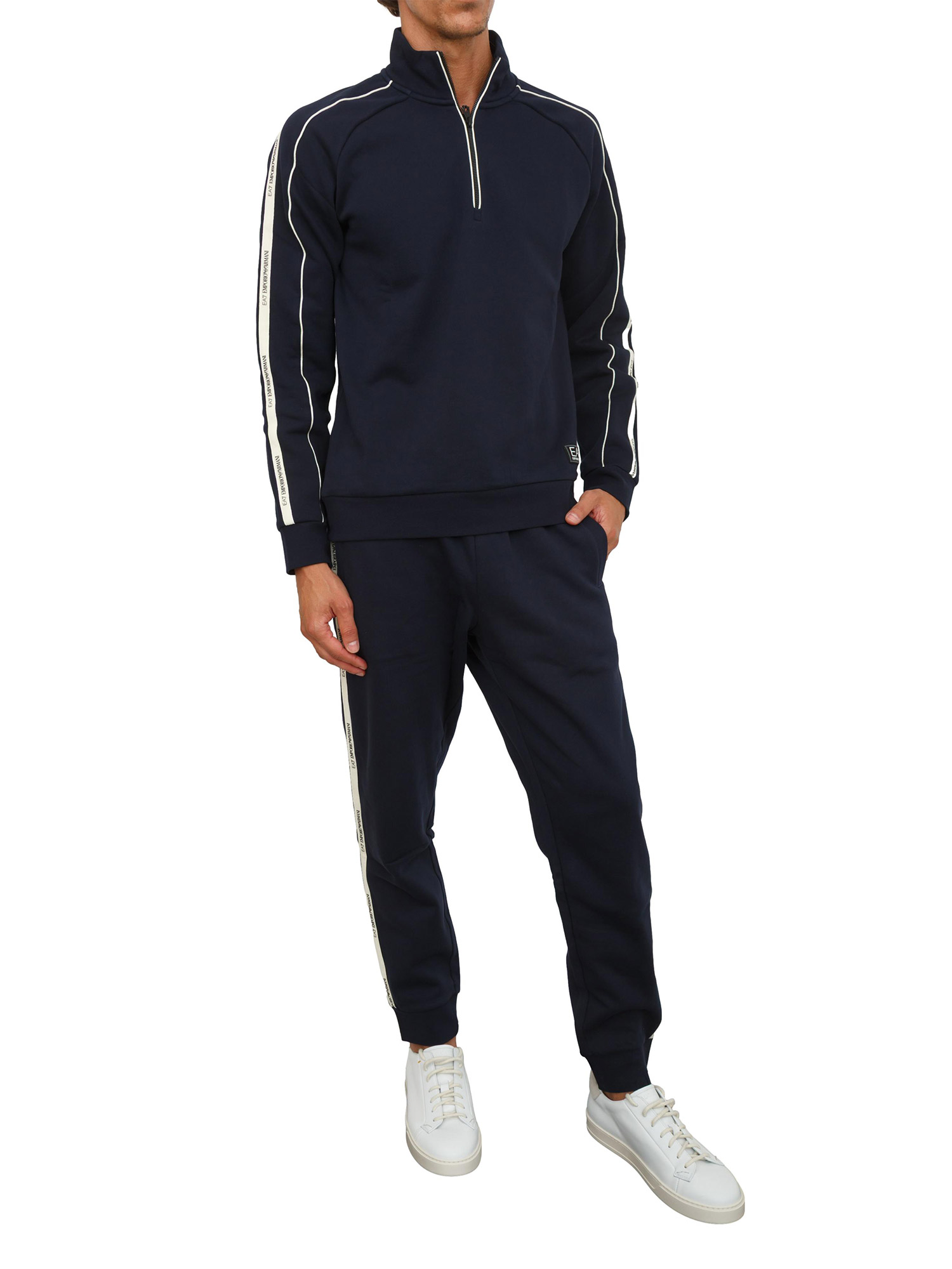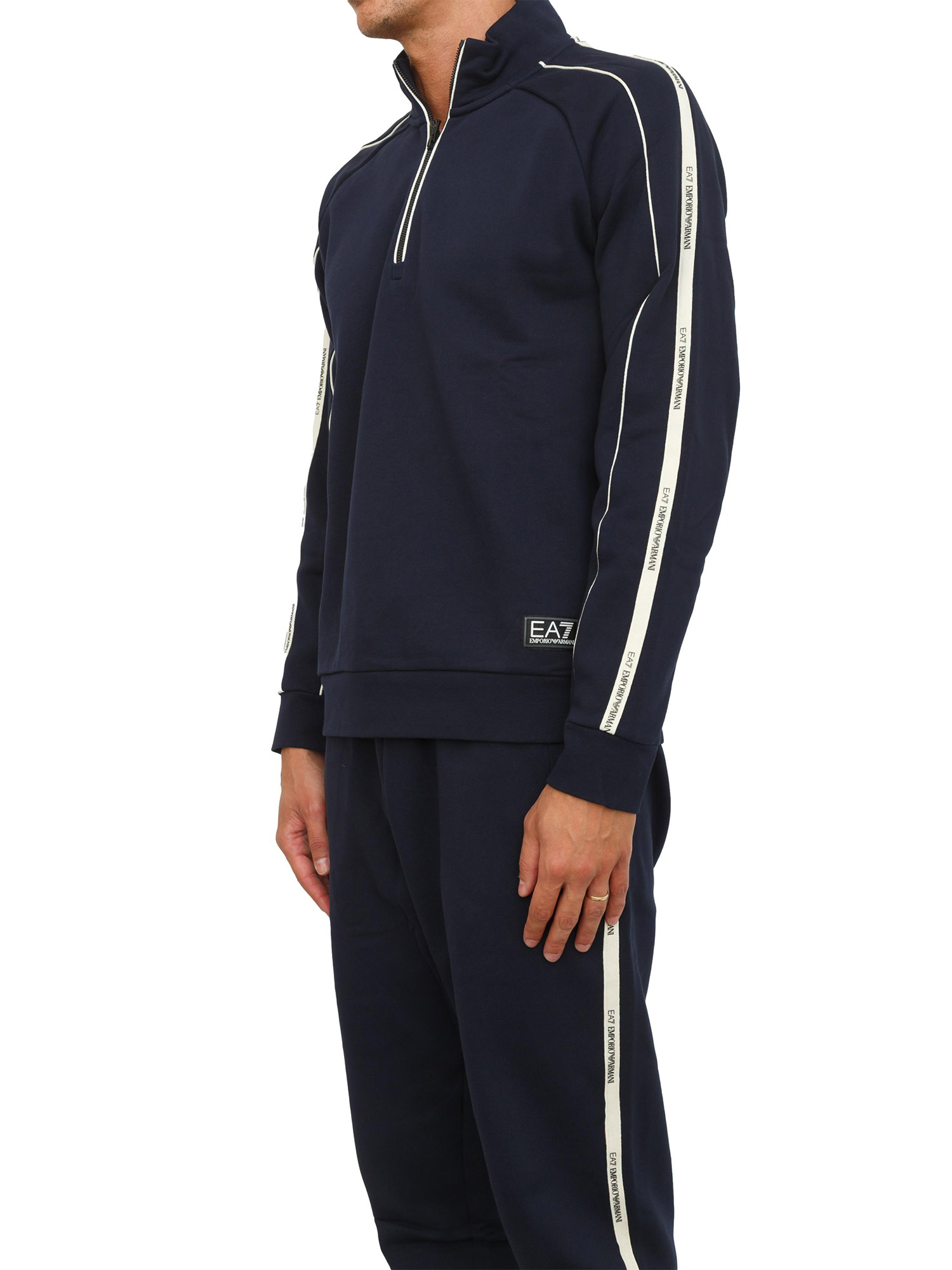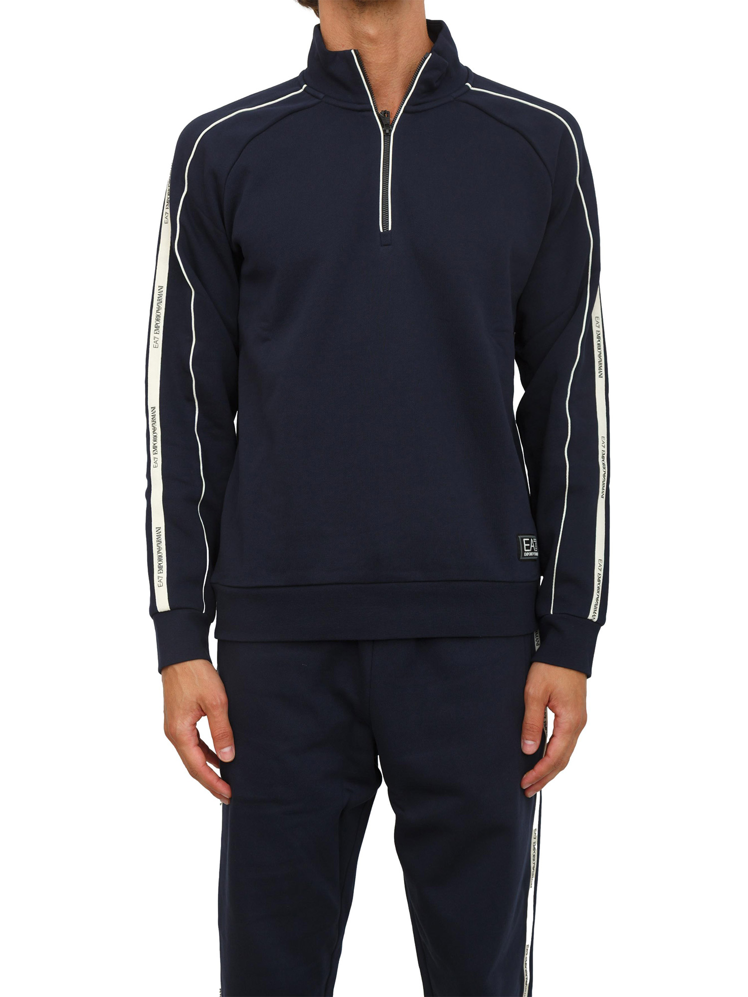 2. Felpa con collo montante e chiusura con zip a 3/4 realizzata in misto cotone, dalla vestibilità regular. Il modello è personalizzato dal dettaglio con logo tape sulle spalle e dal logo EA7 sul petto, che riprende altri creazioni della linea Logo Series.