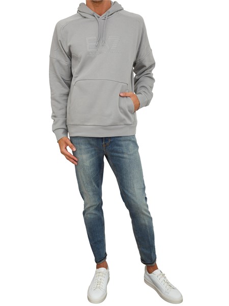 • Felpa blu EA7 Logo Series in misto cotone in UOMO