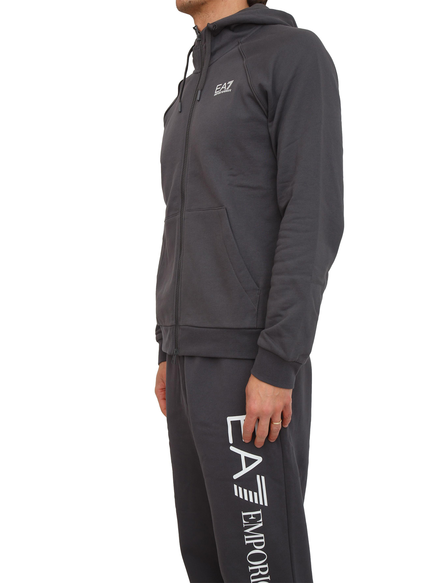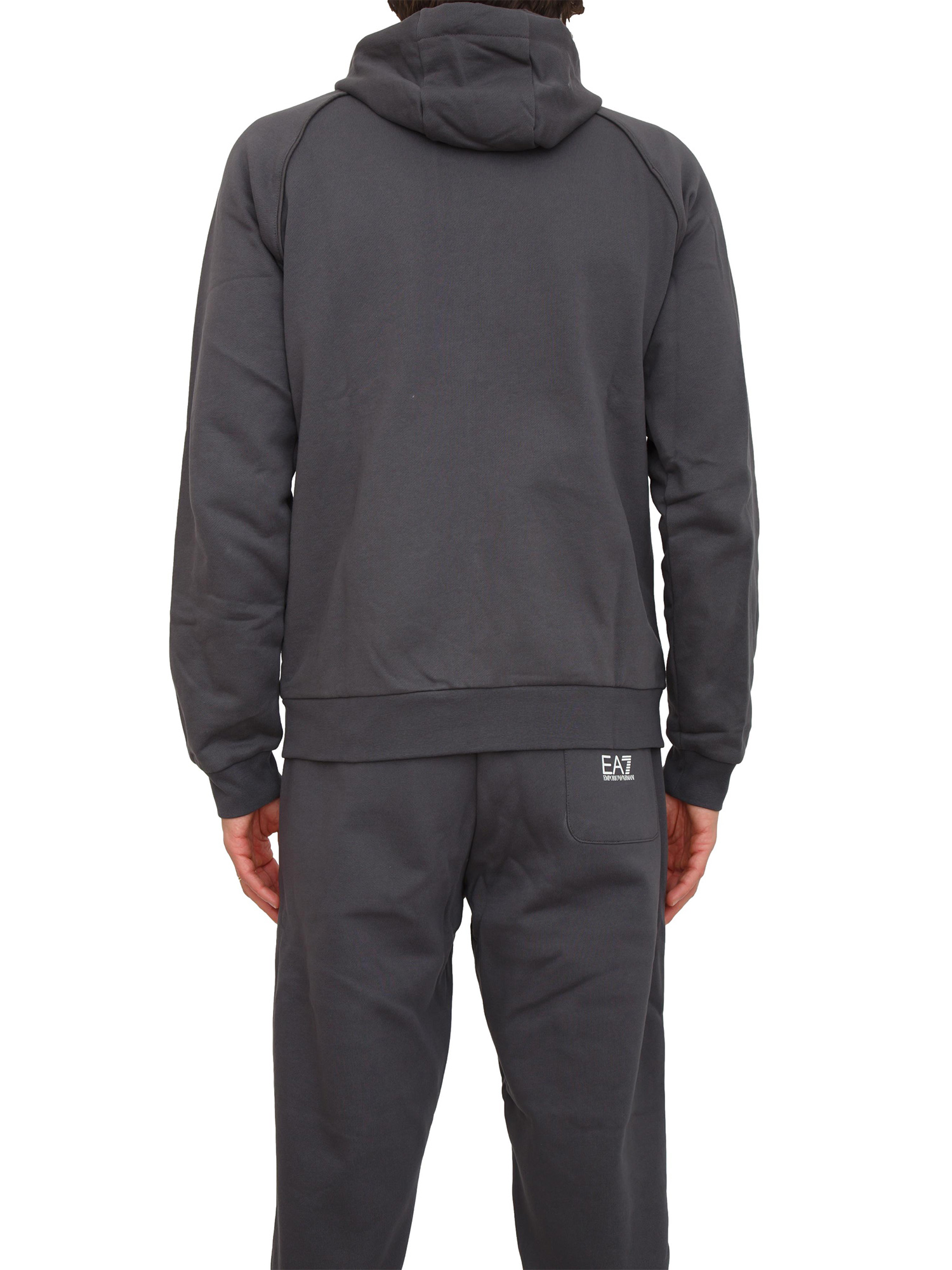 Felpa uomo EA7 Emporio Armani in cotone grigio e logo su manica