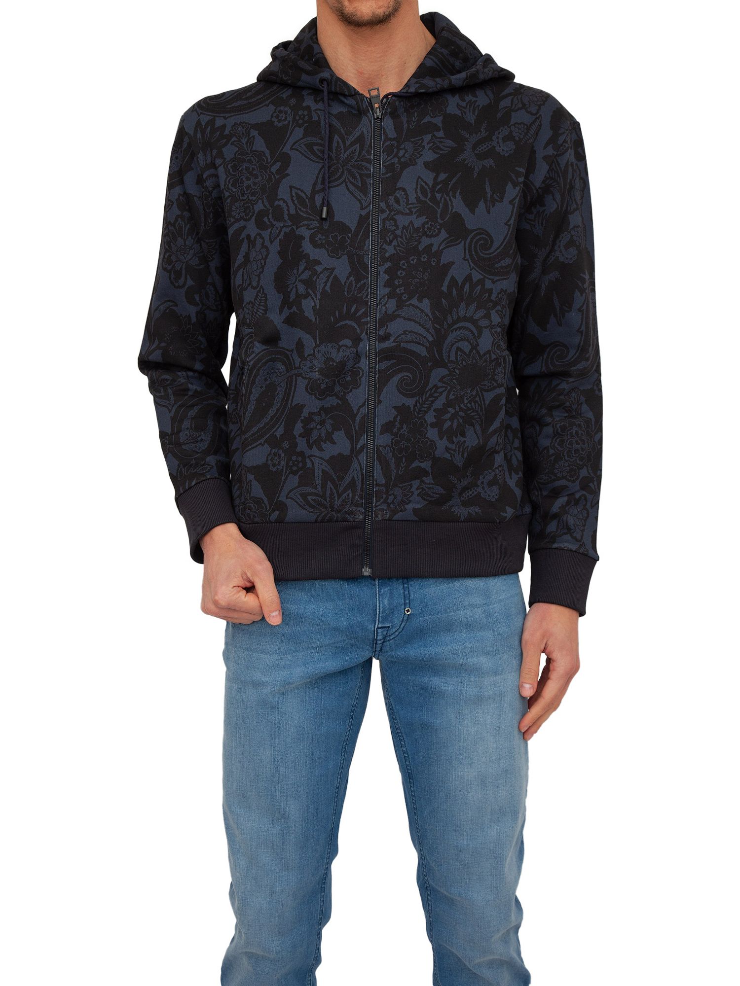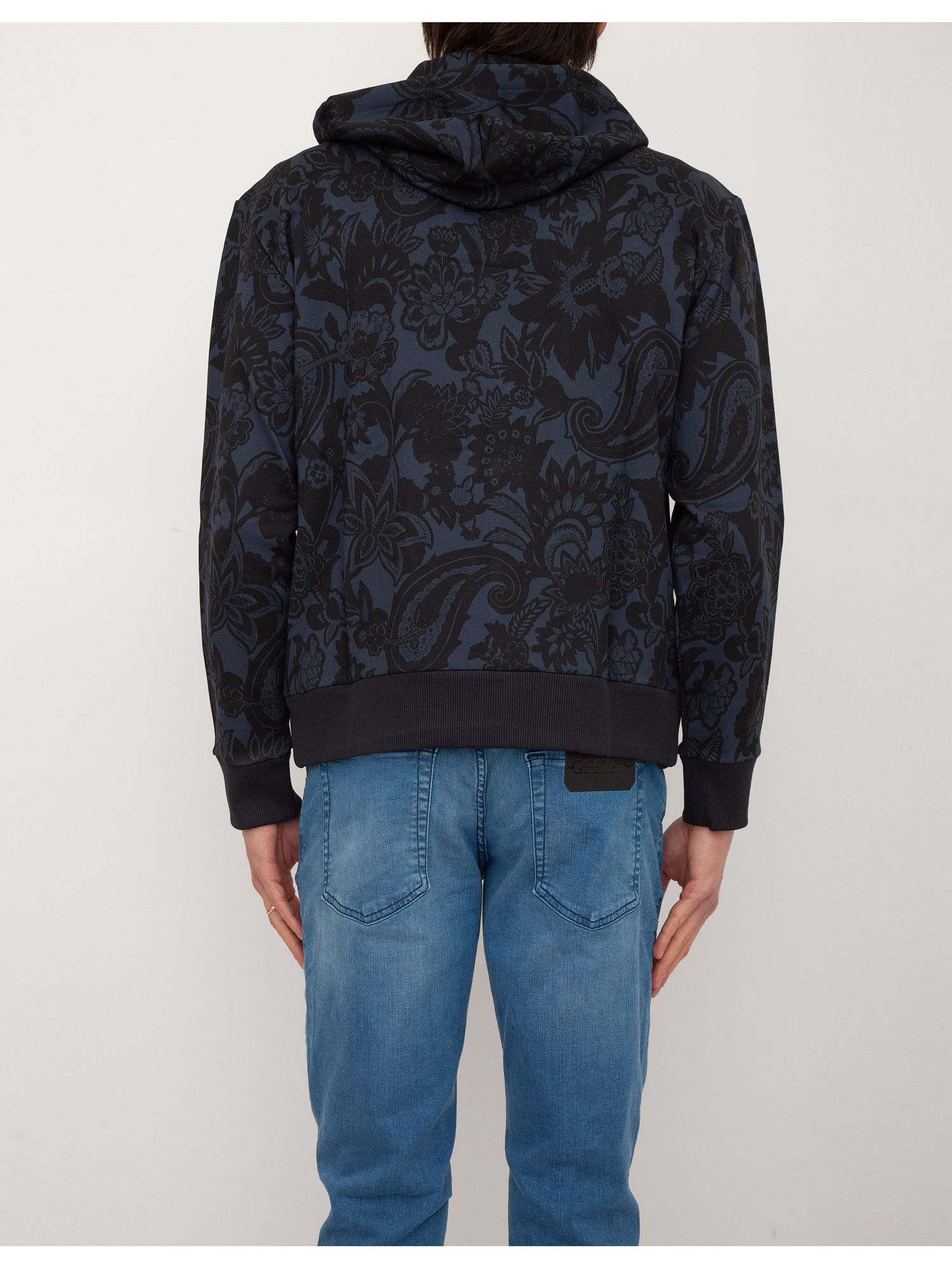 Felpa con cappuccio realizzata in jersey di cotone e decorata con una stampa Paisley floreale all over. Vestibilità regular, chiusura con cerniera con doppio cursore, cappuccio con coulisse e polsini e fondo a costine.