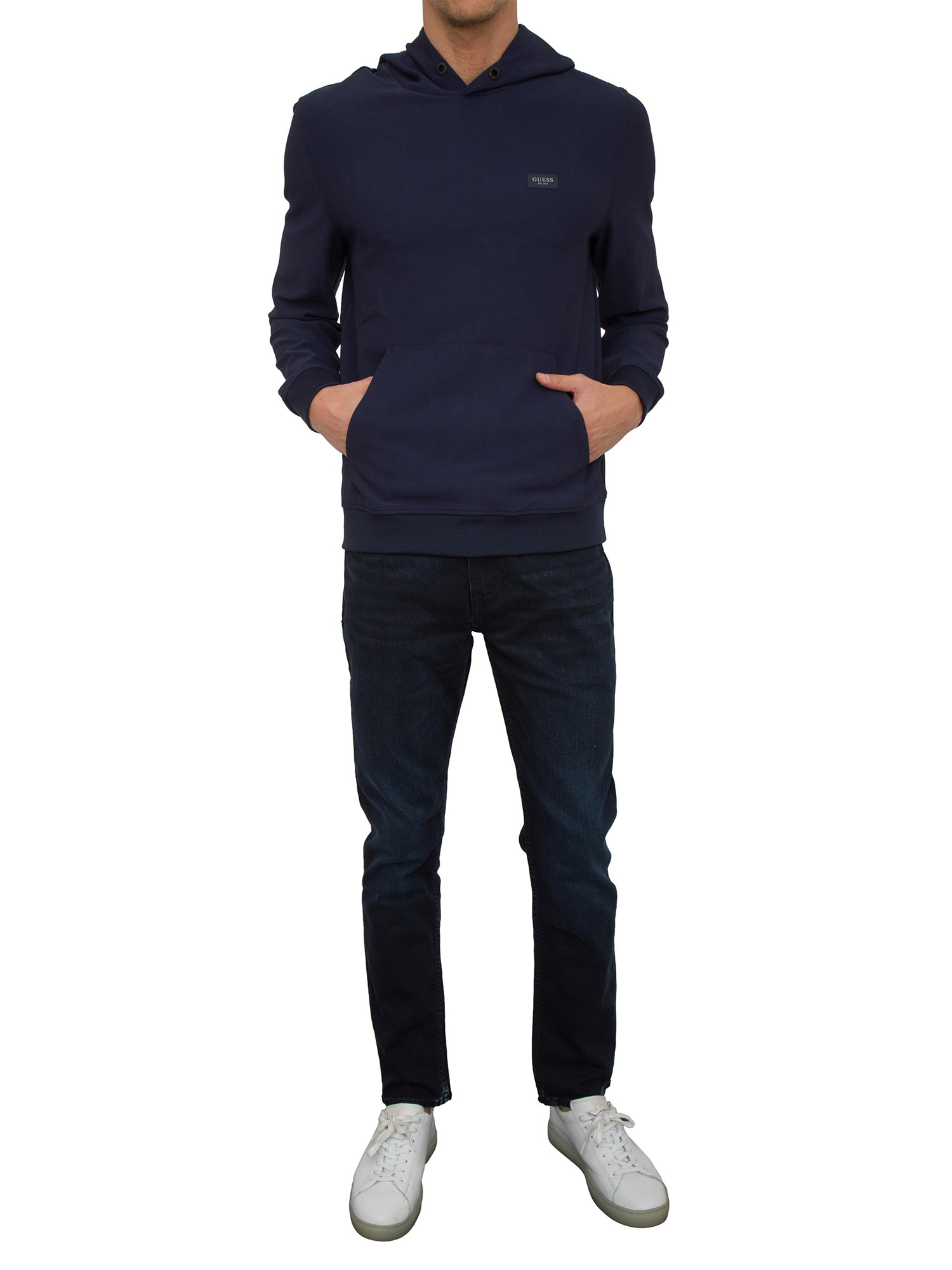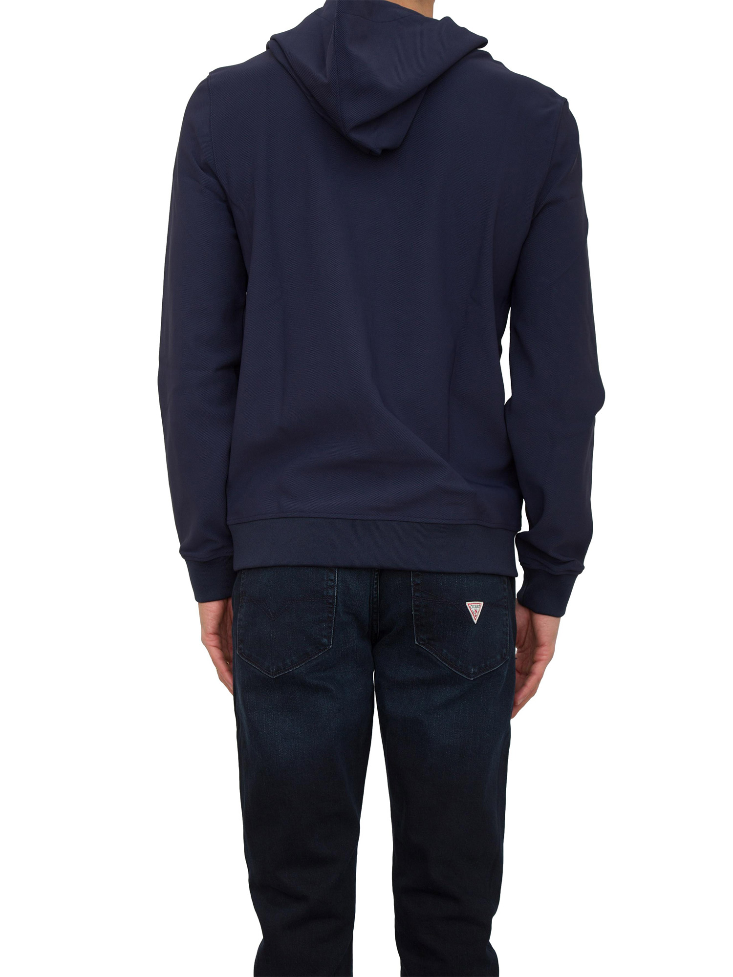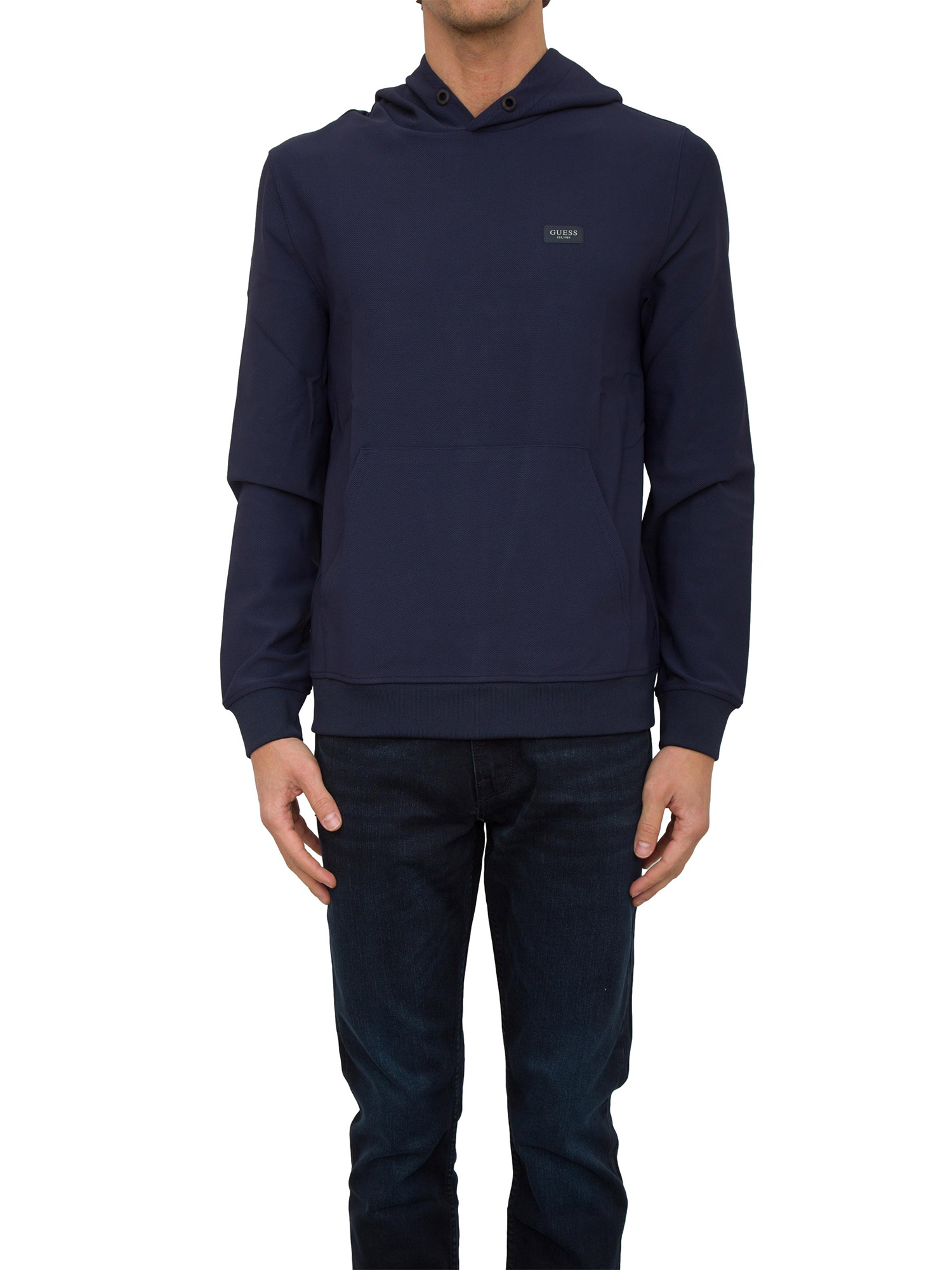 Felpa uomo Guess realizzata con tecnologia innovativa Tech Stretch, utilizza fibre ottimali per offrire il massimo comfort e libertà di movimento. Dotata di cappuccio fisso, logo pulito sul davanti e tasca a marsupio, la felpa è ideale per un look casual e funzionale.